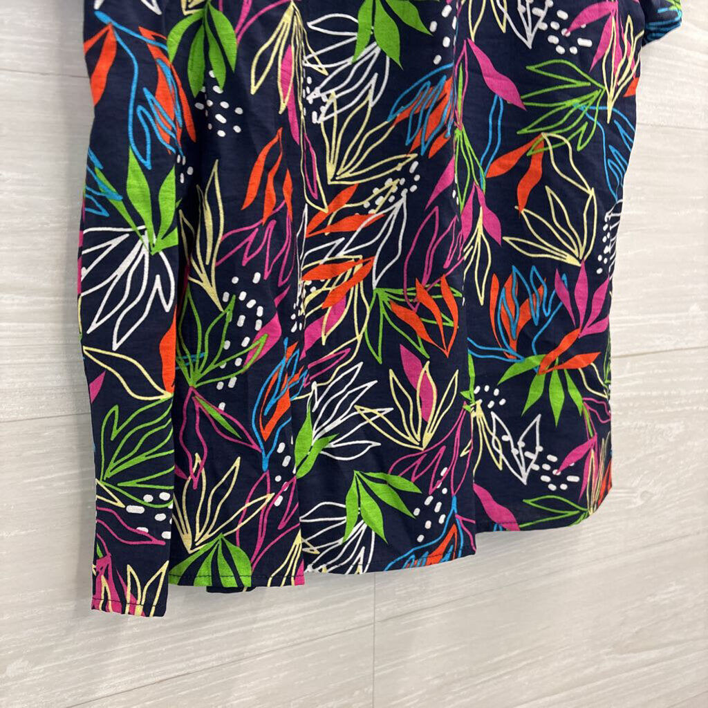 THML Black/ Multi Bright Print Short Sleeve Mock Neck Top Extra Small