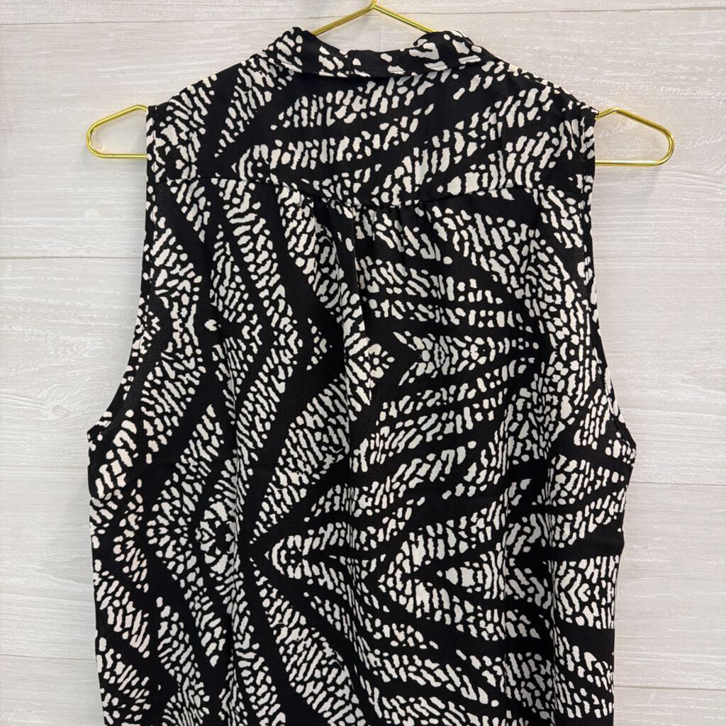 Three Eighty Two Black/ White Print Silky Tank Large