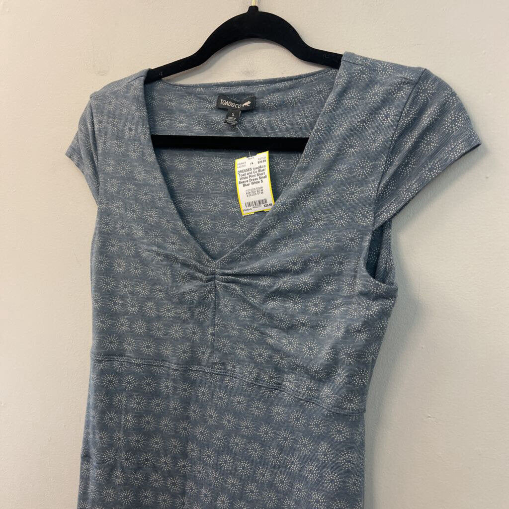 Toad and Co Blue/ White Print Short Sleeve Dress Small