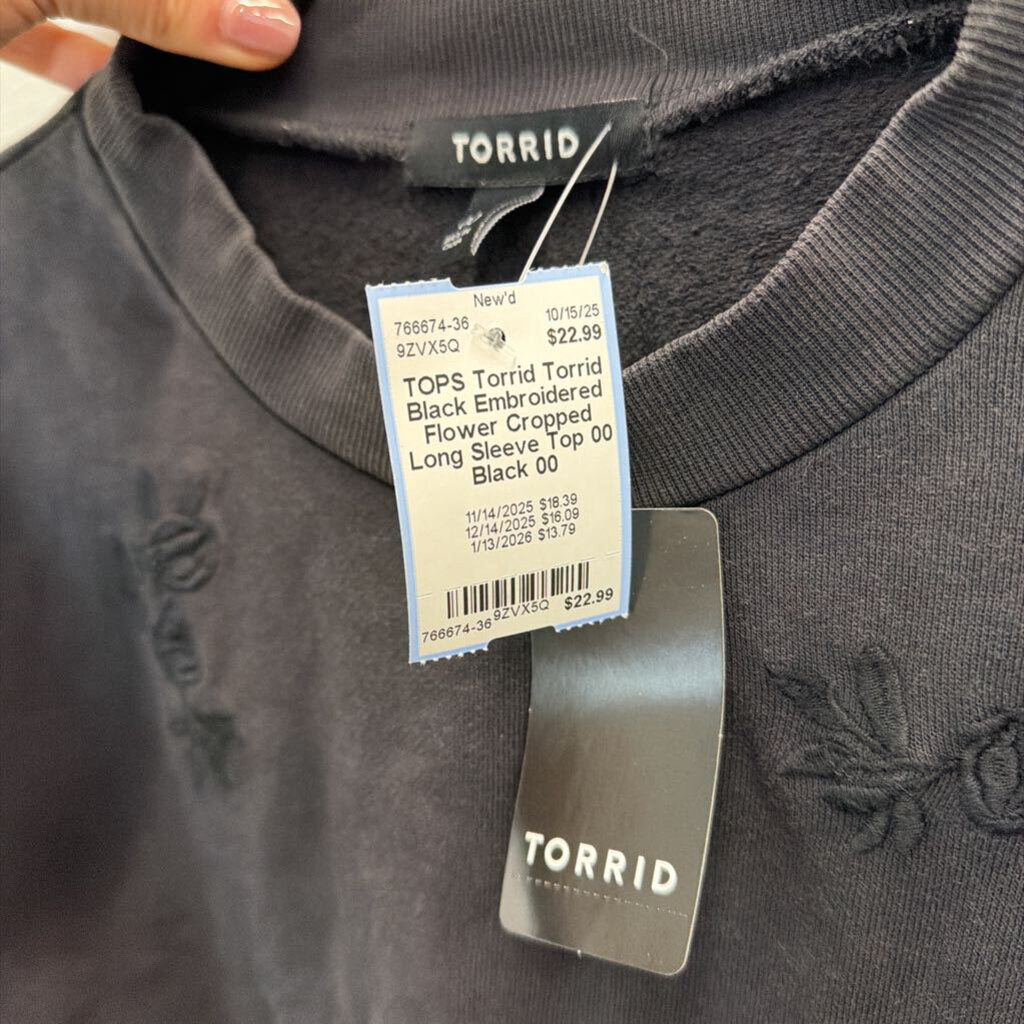 Torrid Black Embroidered Flower Cropped Long Sleeve Top 00