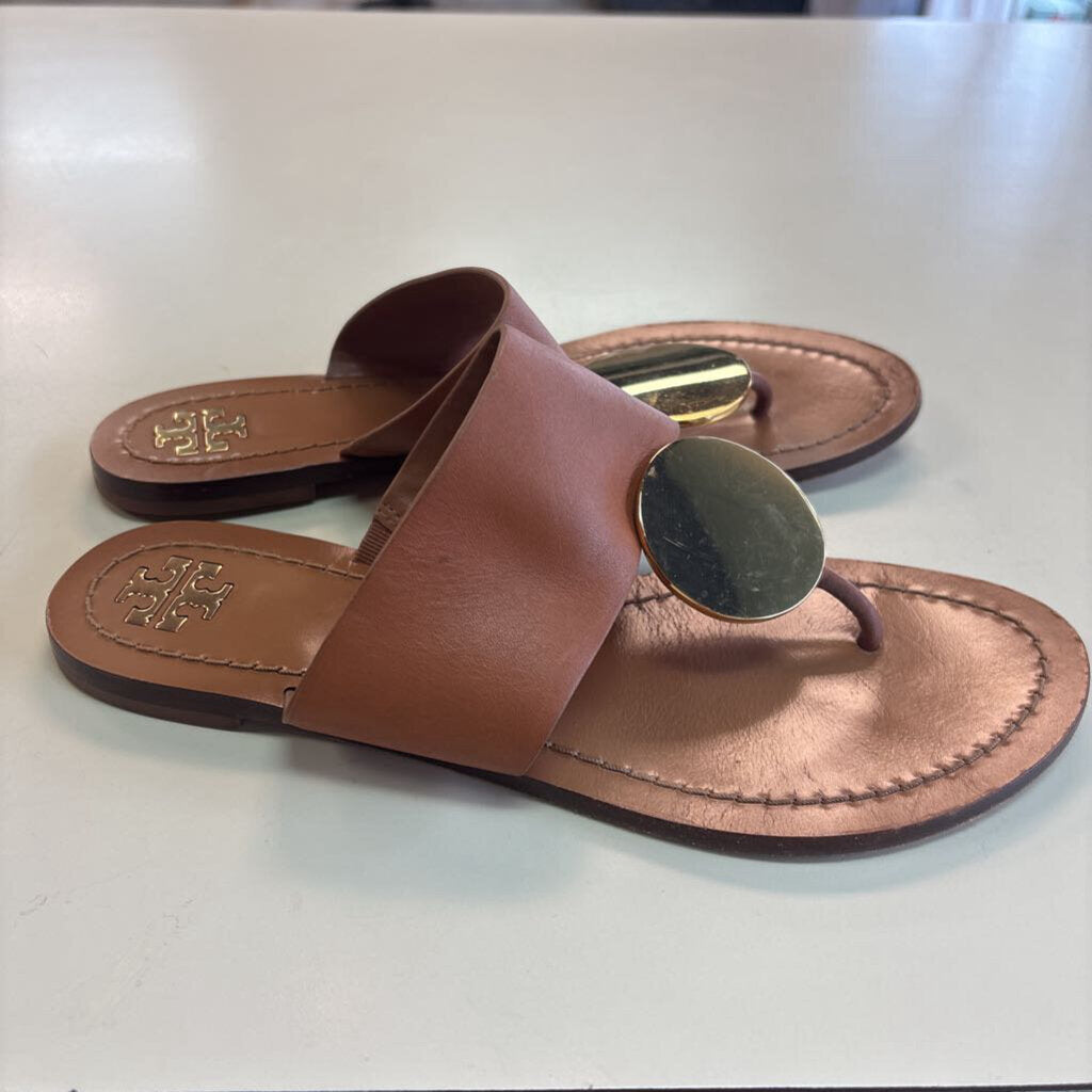 Tory Burch Brown Leather Patos Disk Sandals 7