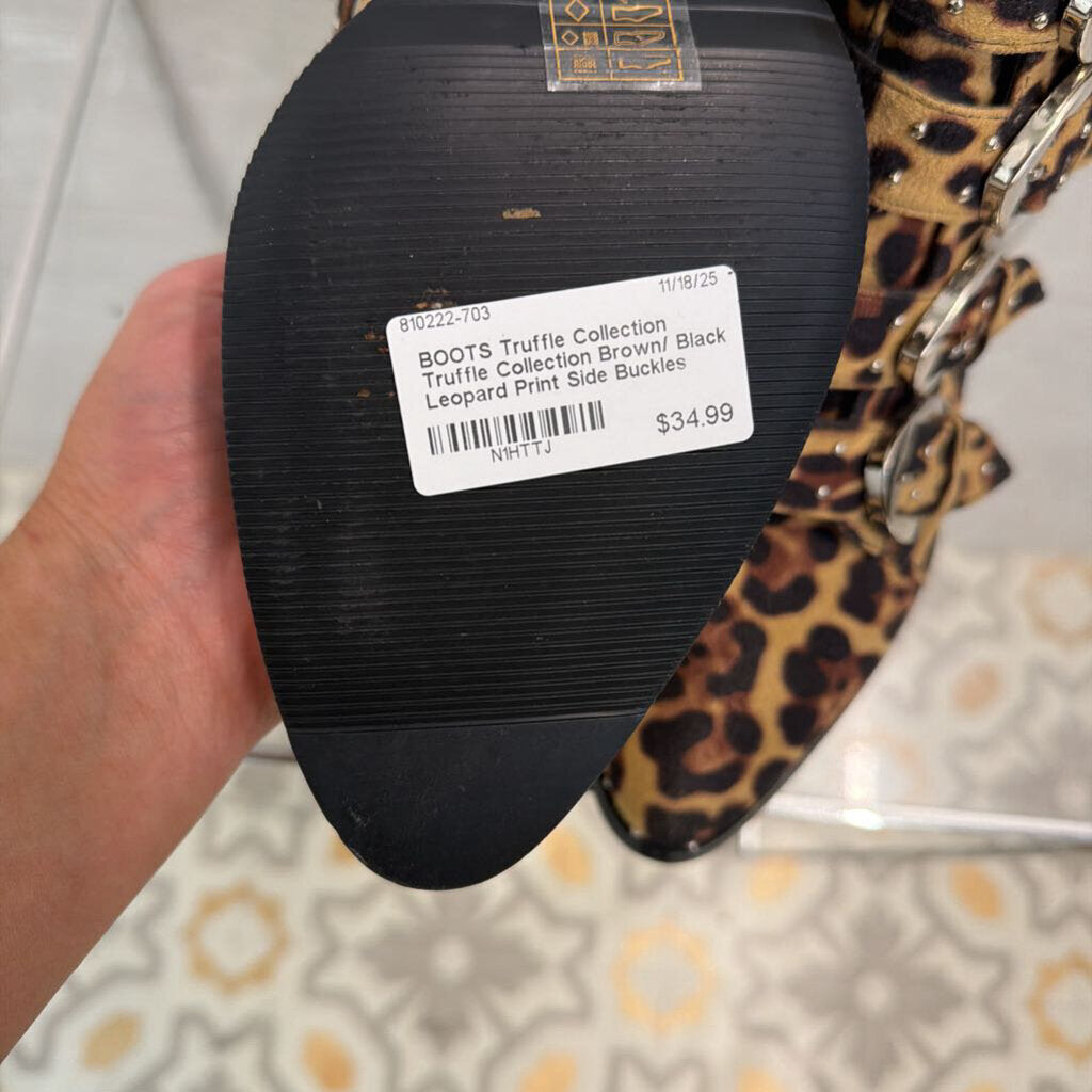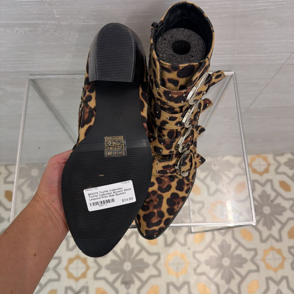 Truffle Collection Brown/ Black Leopard Print Side Buckles Ankle Booties 39