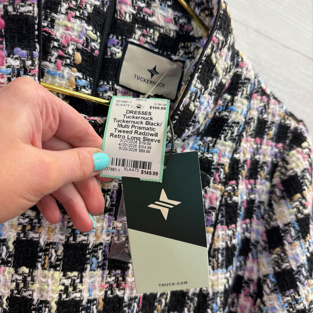 Tuckernuck Black/ Multi Prismatic Tweed Radziwill Retro Long Sleeve Mini Dress Extra Large