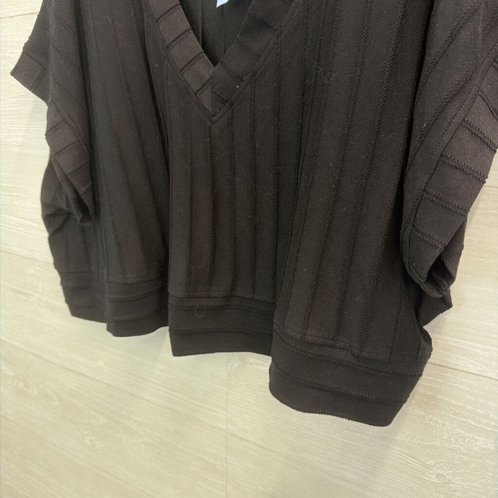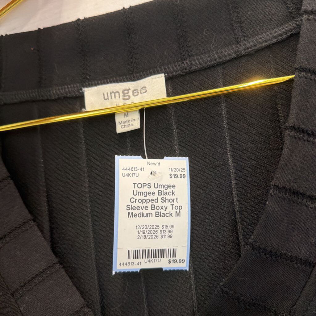 Umgee Black Cropped Short Sleeve Boxy Top Medium