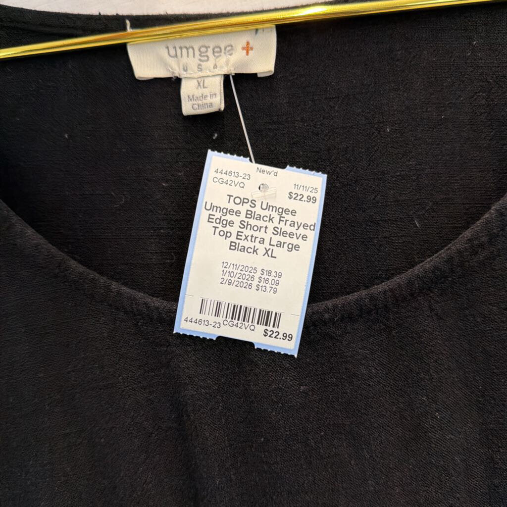 Umgee Black Frayed Edge Short Sleeve Top Extra Large