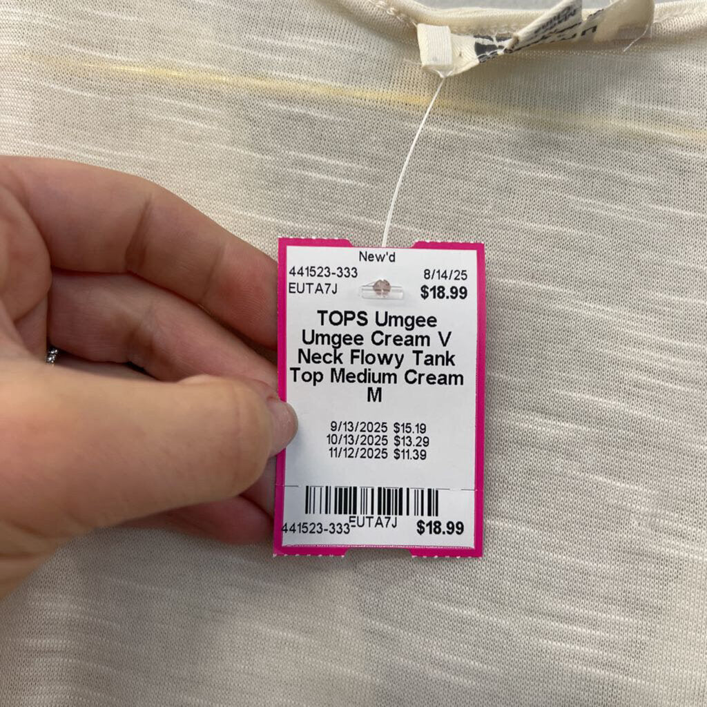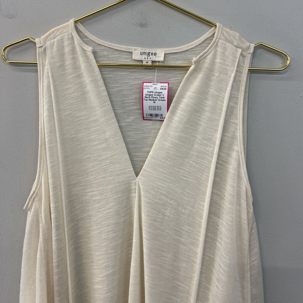Umgee Cream V Neck Flowy Tank Top Medium