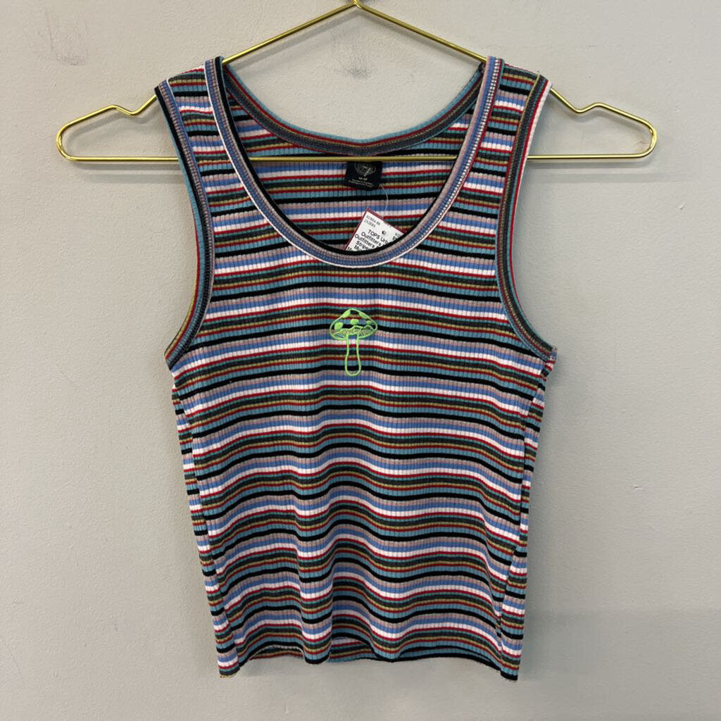 Urban Outfitters Blue/ Multi Striped Cropped Mushroom Tank Medium