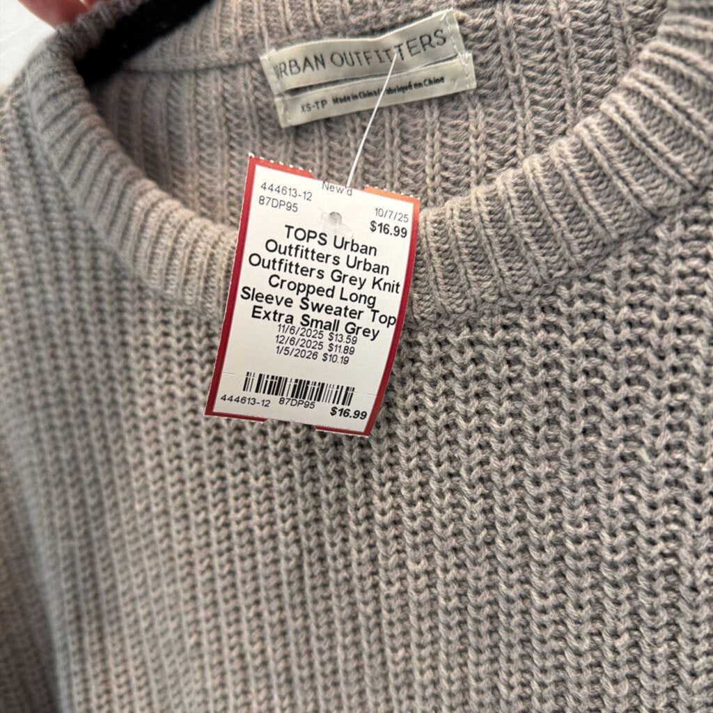 Urban Outfitters Grey Knit Cropped Long Sleeve Sweater Top Extra Small