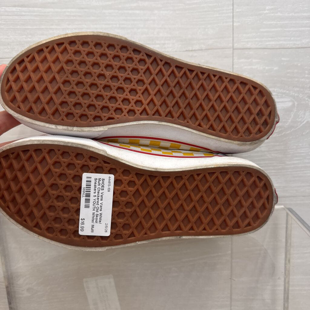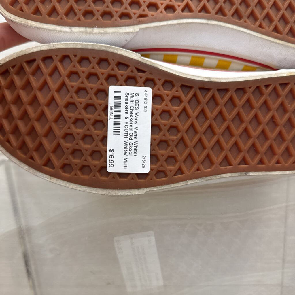 Vans White/ Multi Checkered Old Skool Sneakers 5 YOUTH