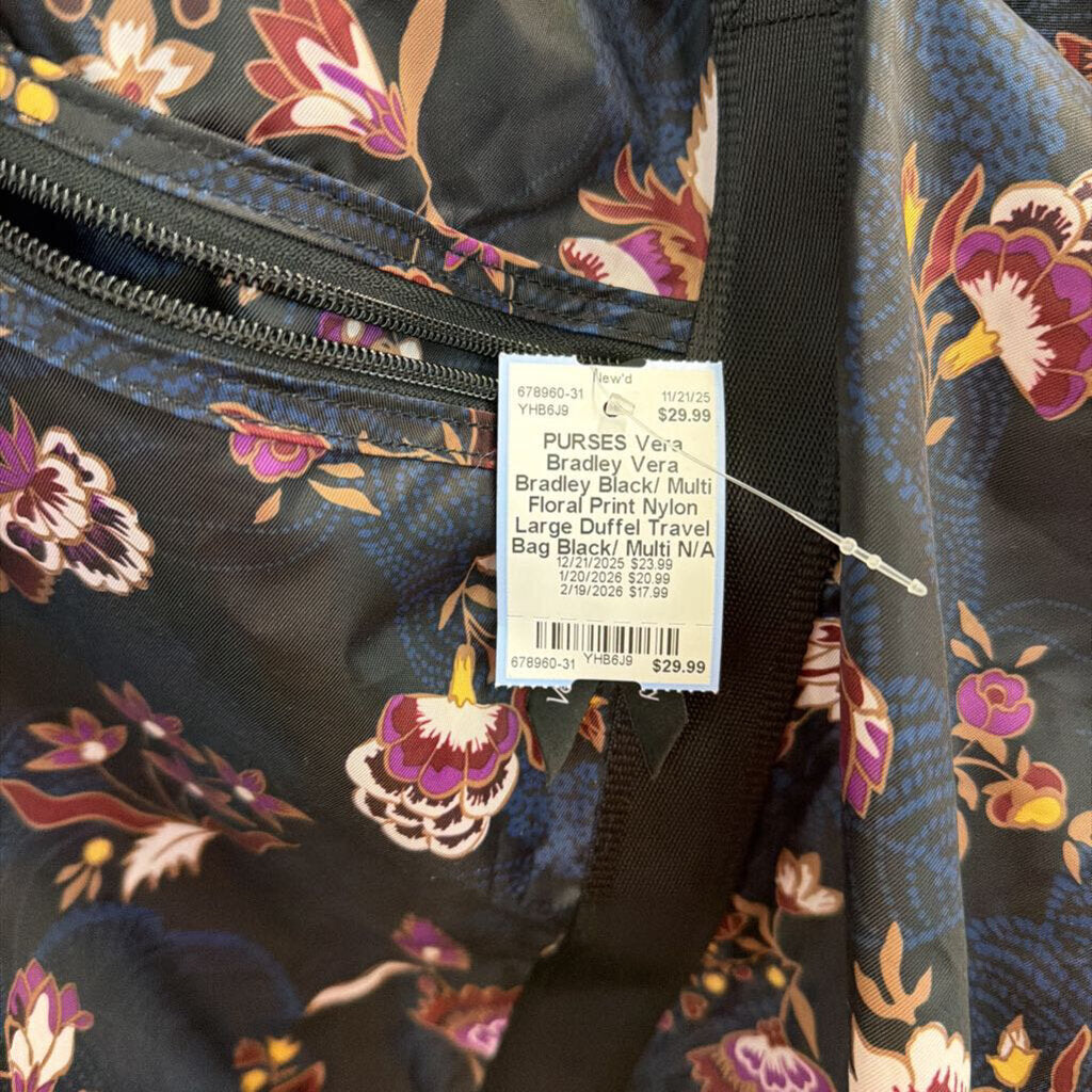 Vera Bradley Black/ Multi Floral Print Nylon Large Duffel Travel Bag