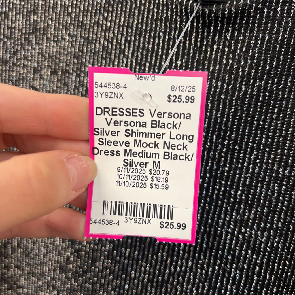 Versona Black/ Silver Shimmer Long Sleeve Mock Neck Dress Medium