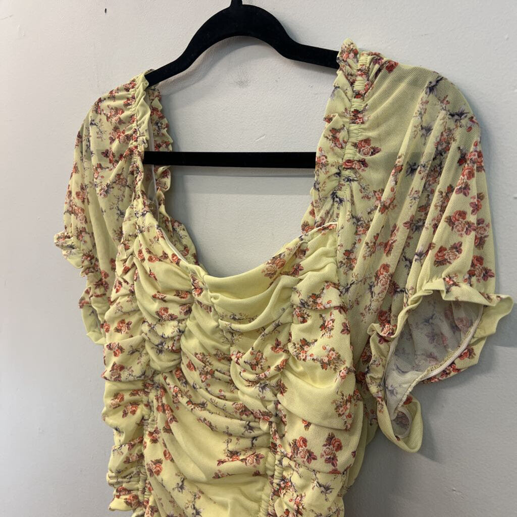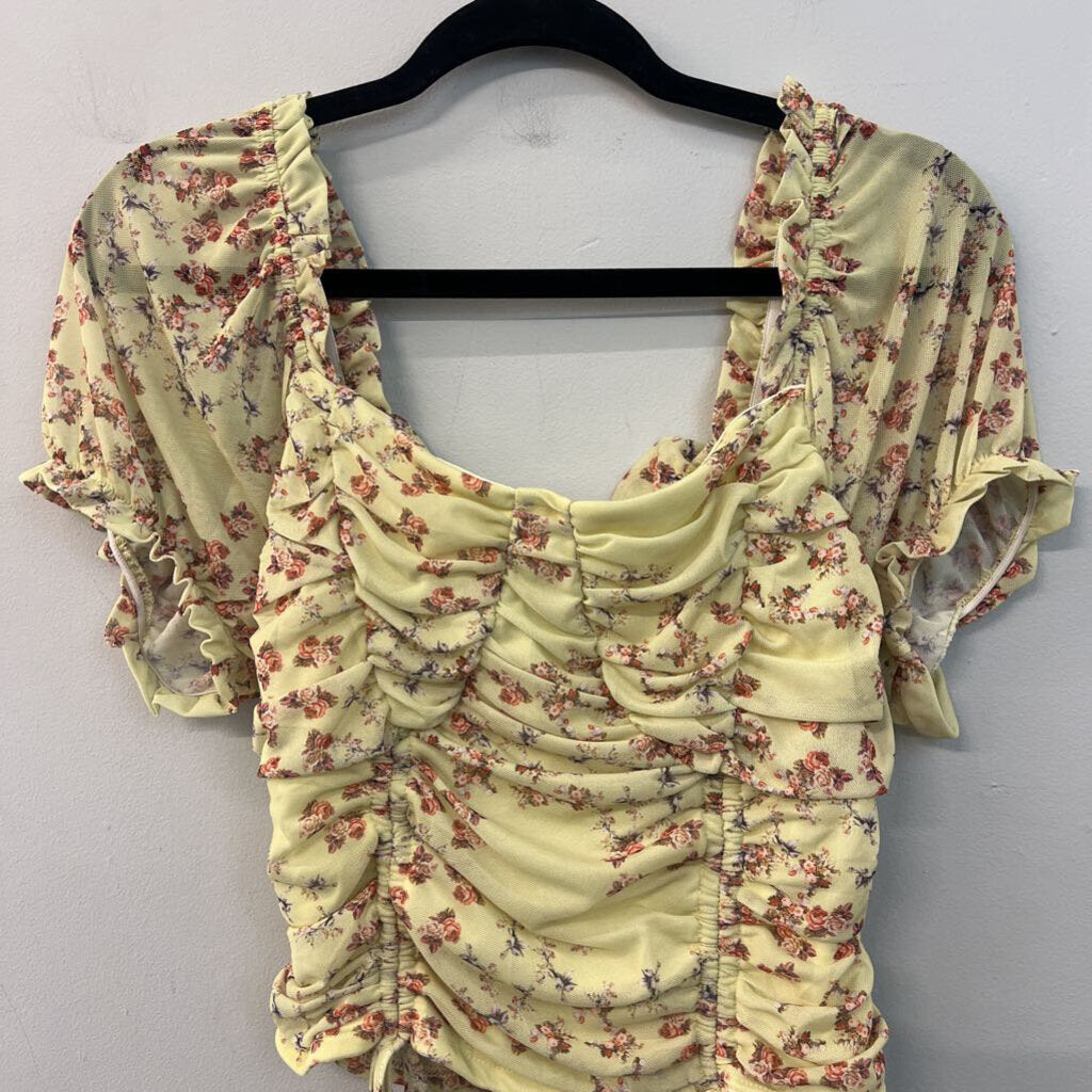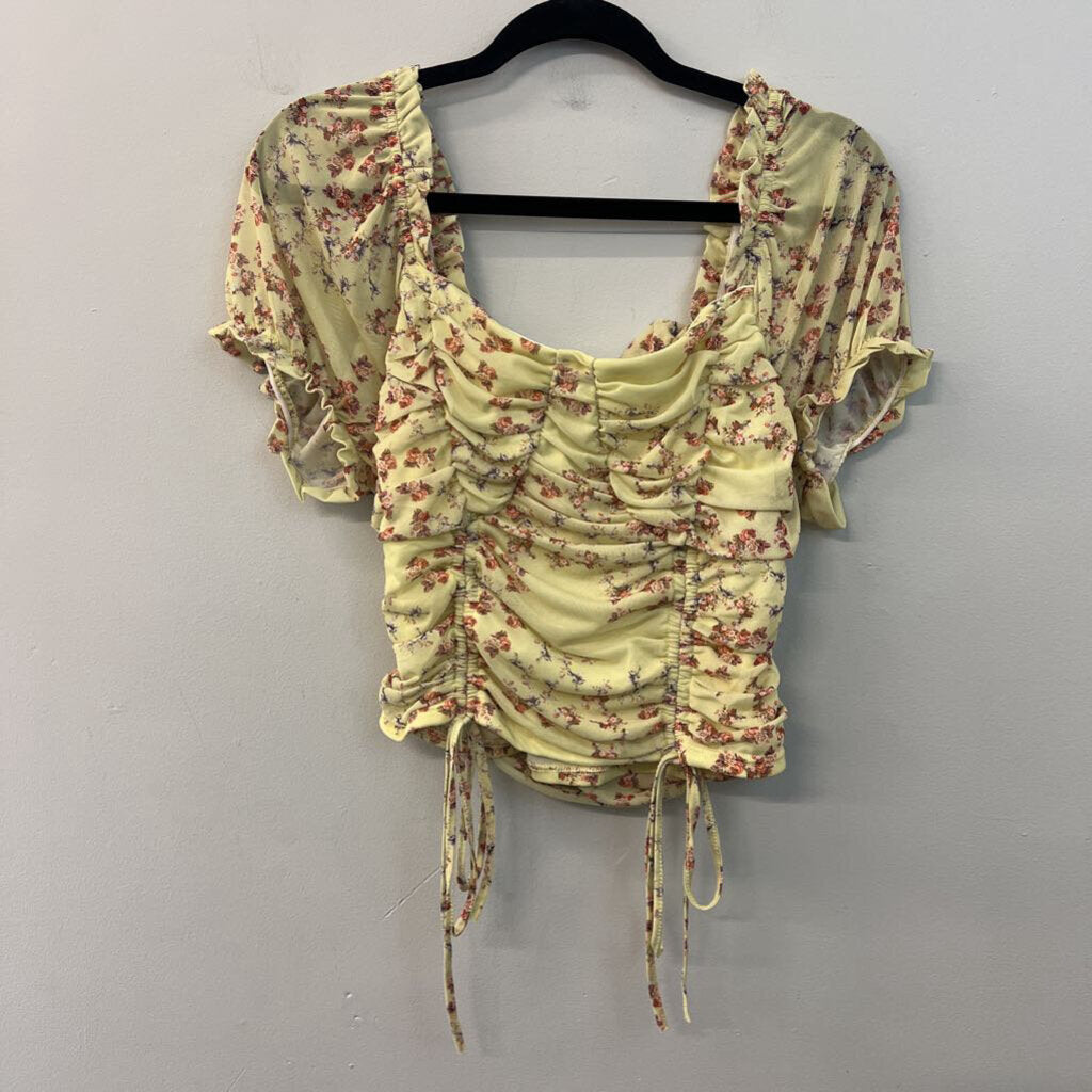 Versona Green/ Red Flower Print Short Puff Sleeve Crop Top Large