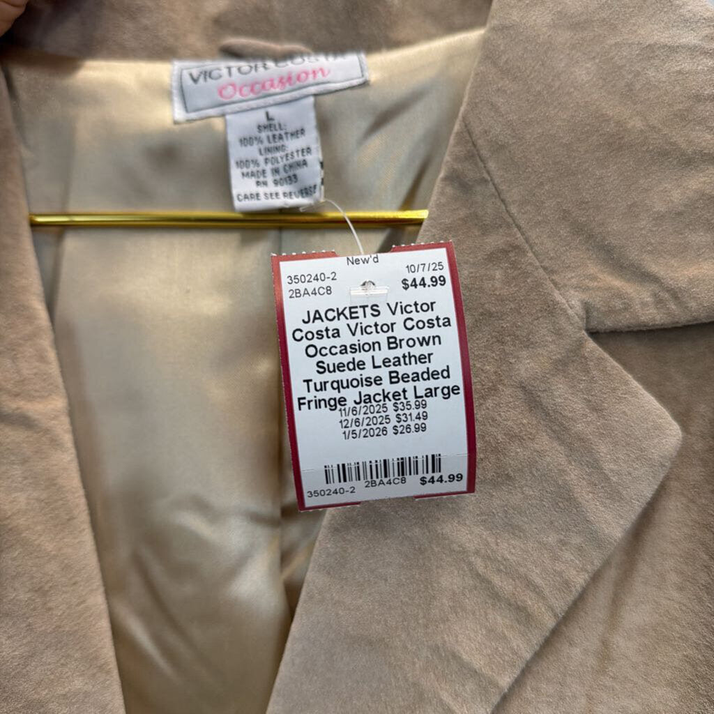 Victor Costa Occasion Brown Suede Leather Turquoise Beaded Fringe Jacket Large