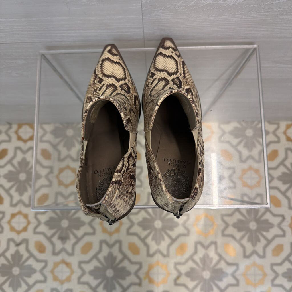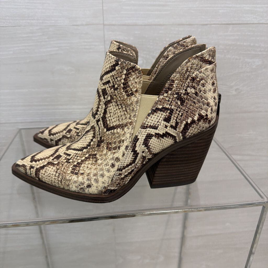 Vince Camuto Cream/ Brown Snakeskin Print Gradina Block Heel Ankle Boots 7.5