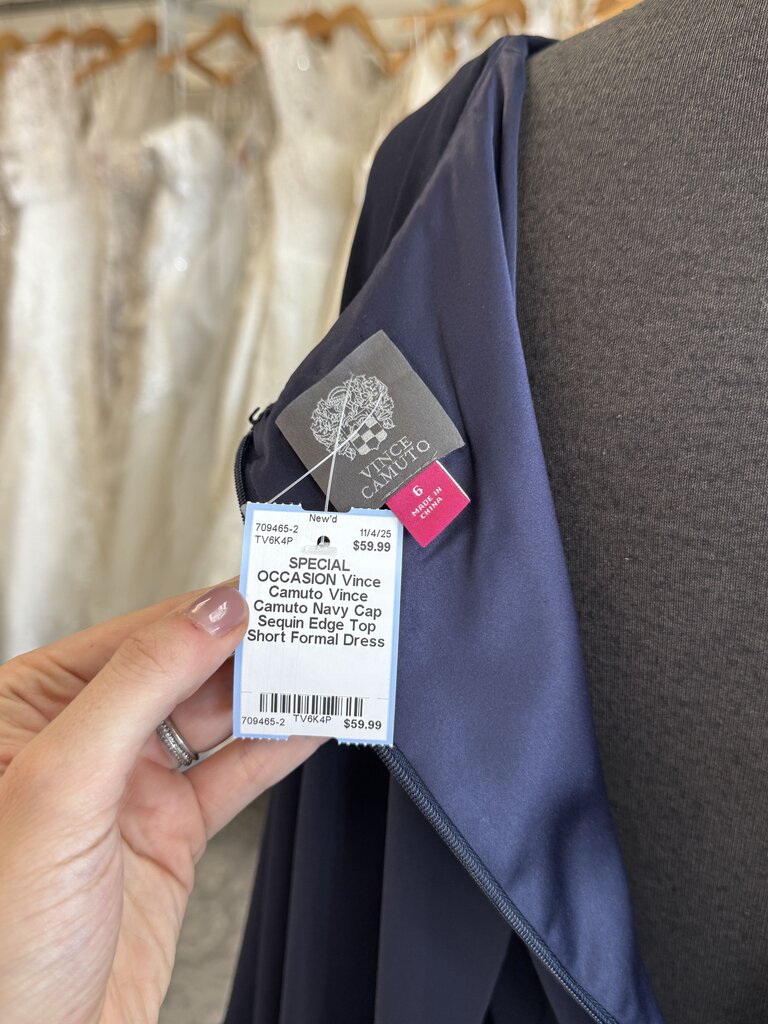 Vince Camuto Navy Cap Sequin Edge Top Short Formal Dress 6