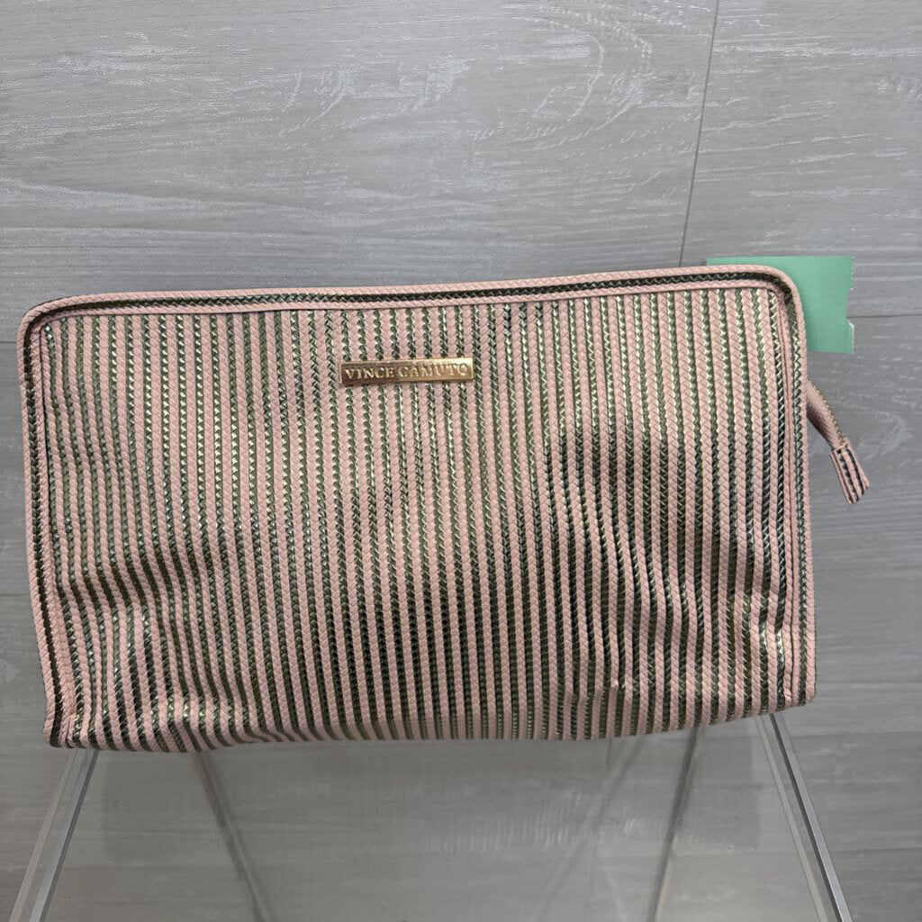 Vince Camuto Pink/ Gold Striped Cosmetic Bag