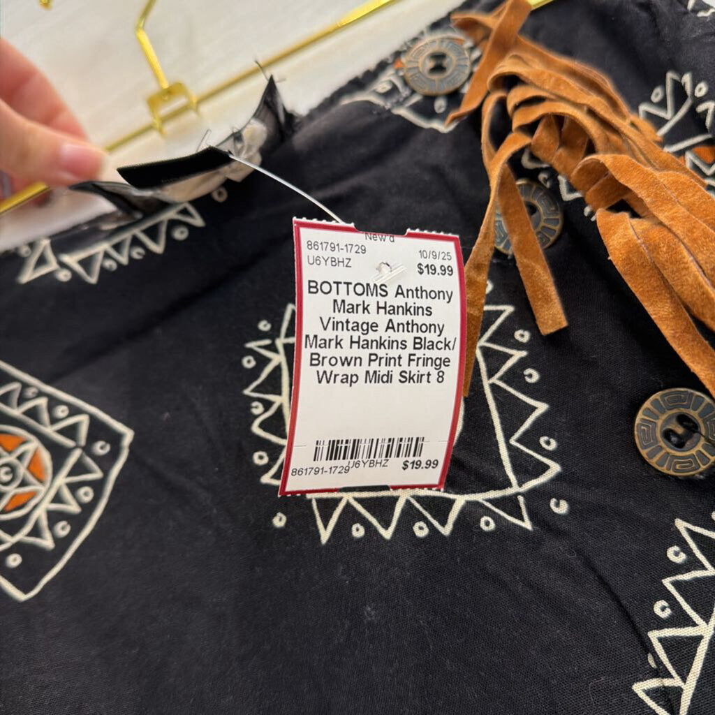 Vintage Anthony Mark Hankins Black/ Brown Print Fringe Wrap Midi Skirt 8