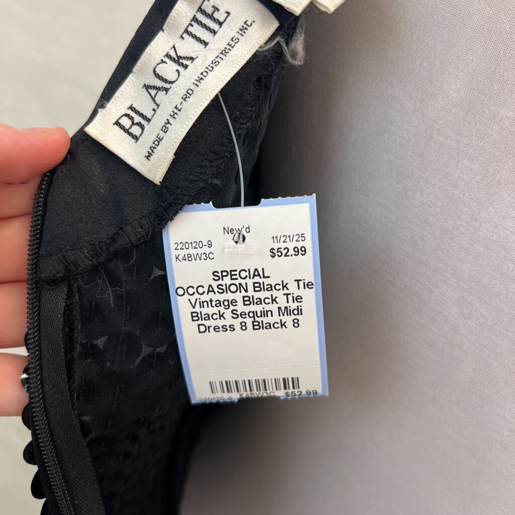 Vintage Black Tie Black Sequin Midi Dress 8