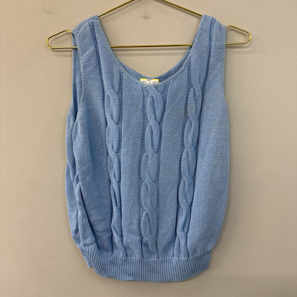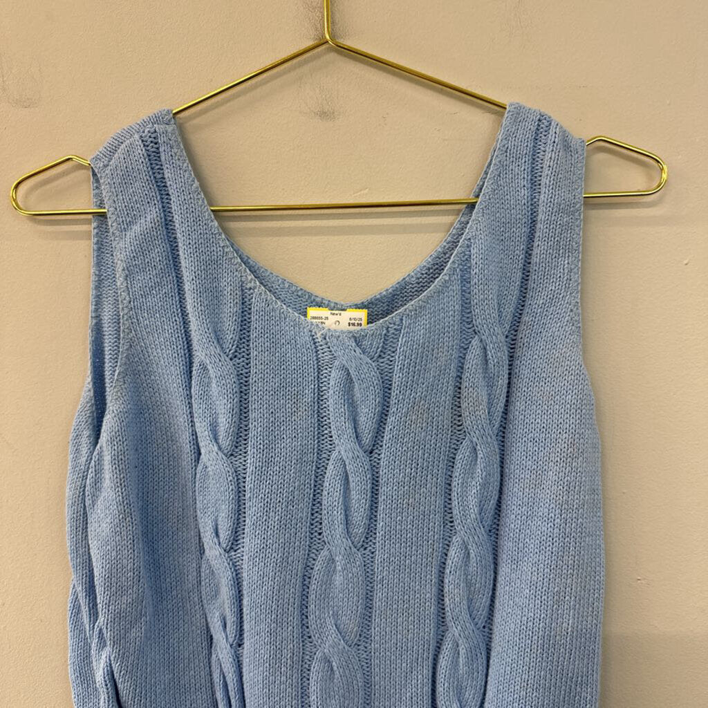 Vintage Blue Cable Knit Sweater Tank Top Small