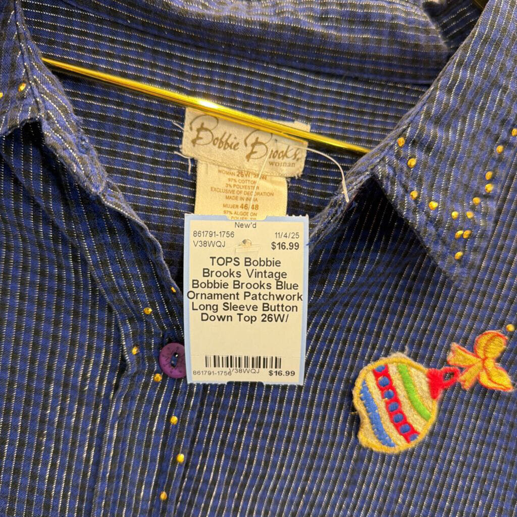Vintage Bobbie Brooks Blue Ornament Patchwork Long Sleeve Button Down Top 26W/ 28W