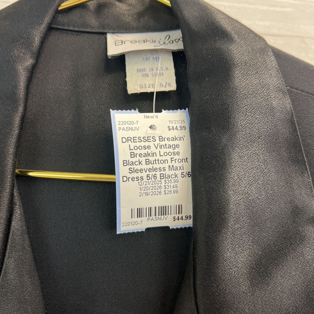 Vintage Breakin Loose Black Button Front Sleeveless Maxi Dress 5/6