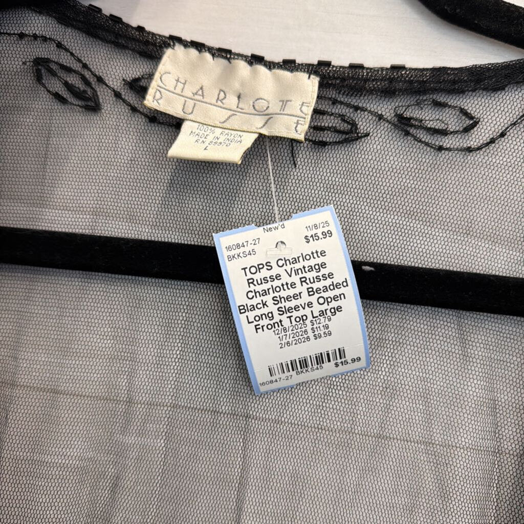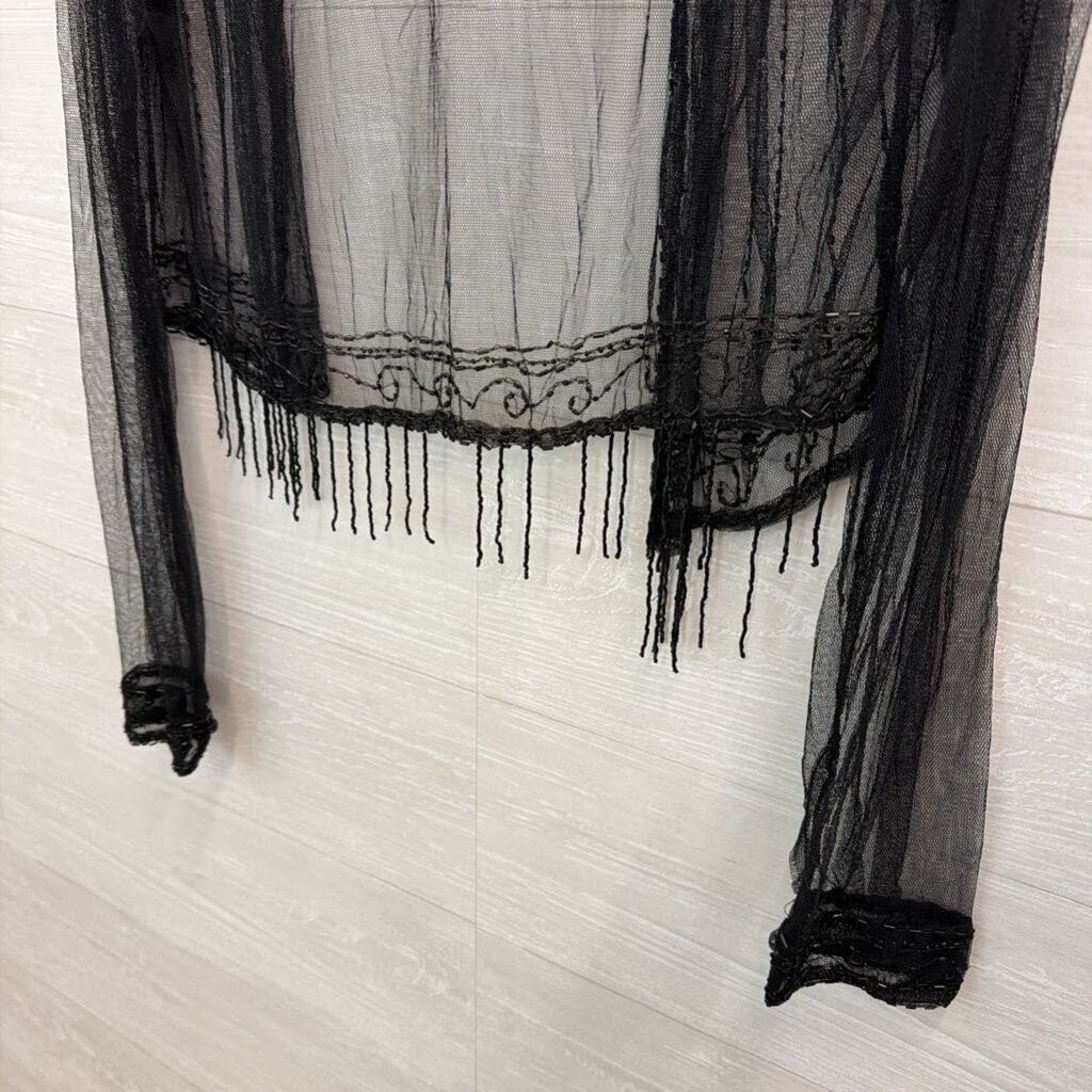Vintage Charlotte Russe Black Sheer Beaded Long Sleeve Open Front Top Large