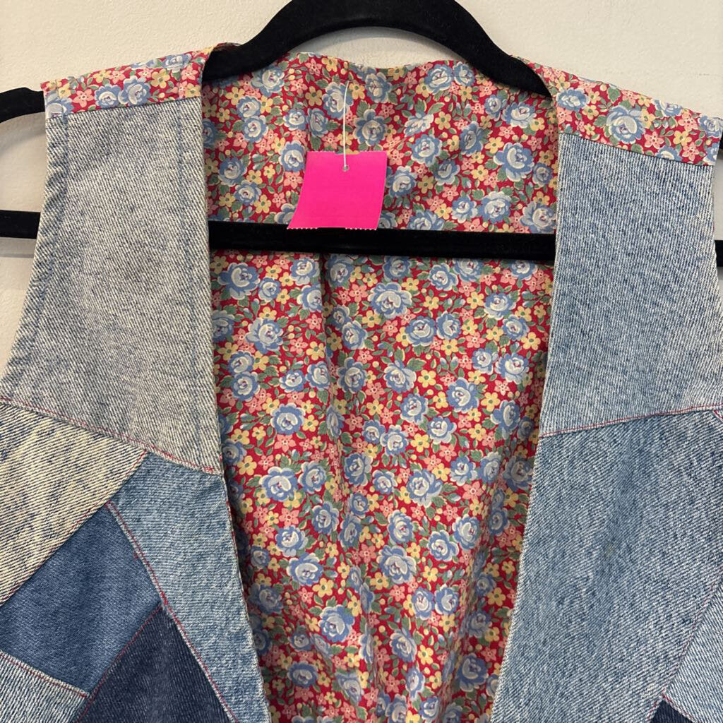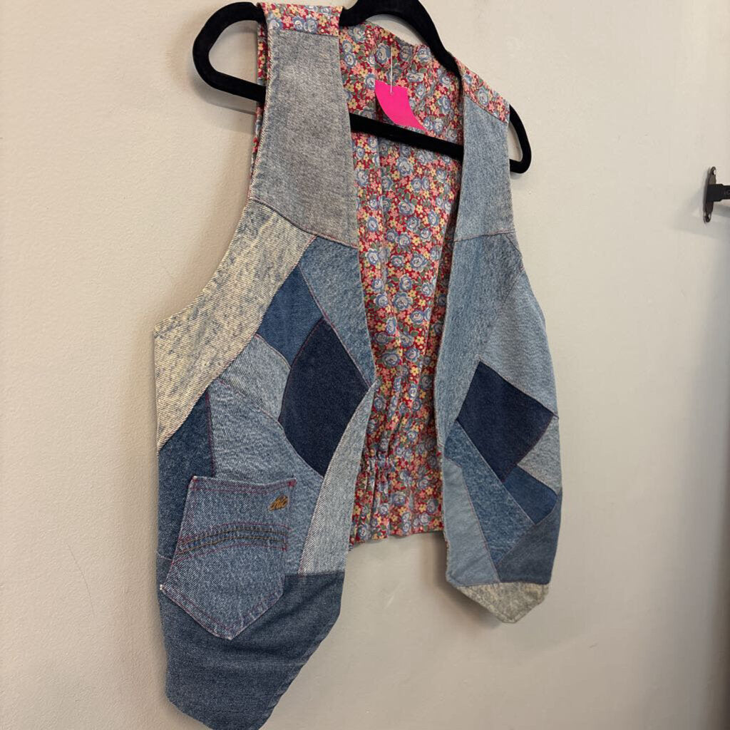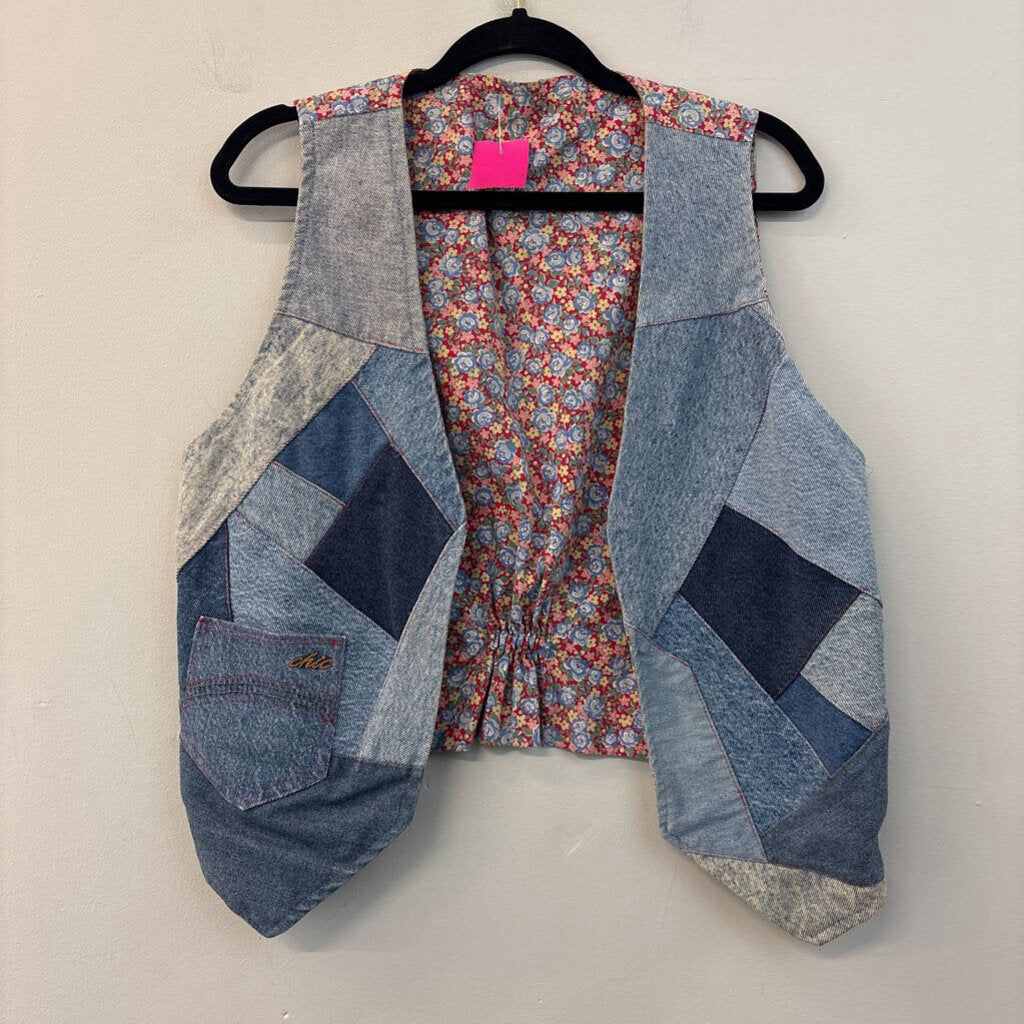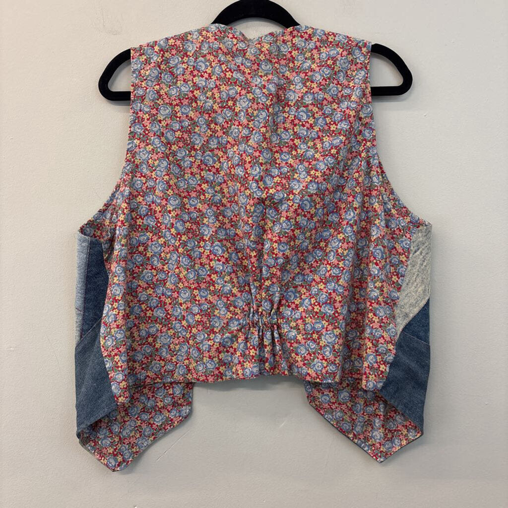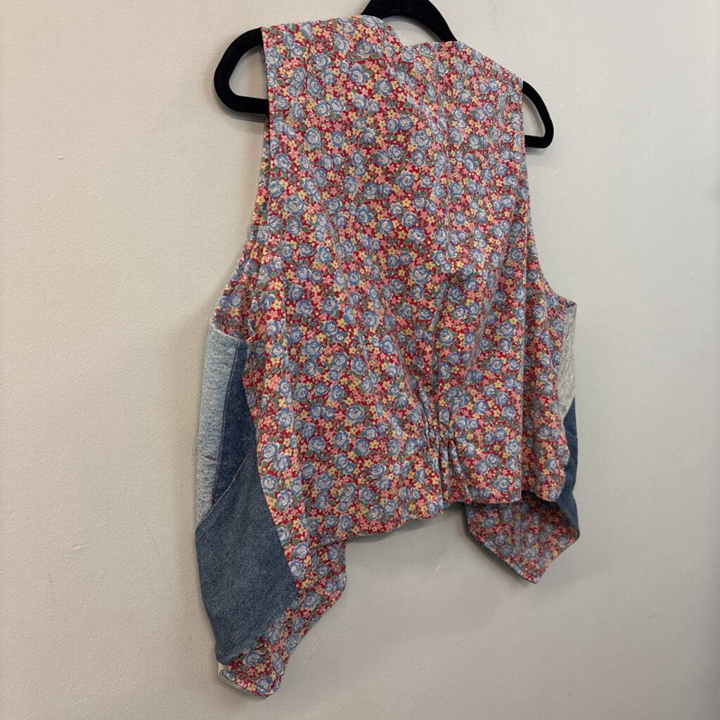 Vintage Chic Denim/Floral Print Reversible Vest Large