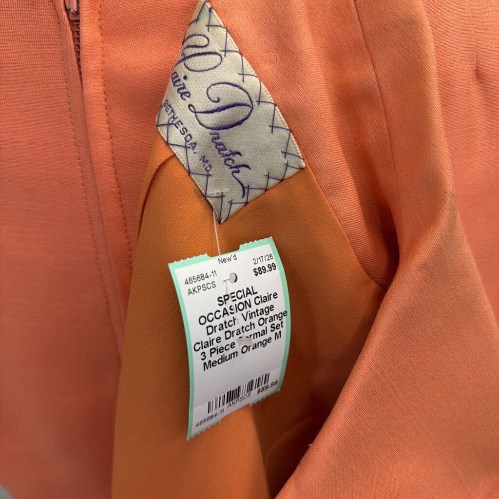 Vintage Claire Dratch Orange 3 Piece Formal Set Medium