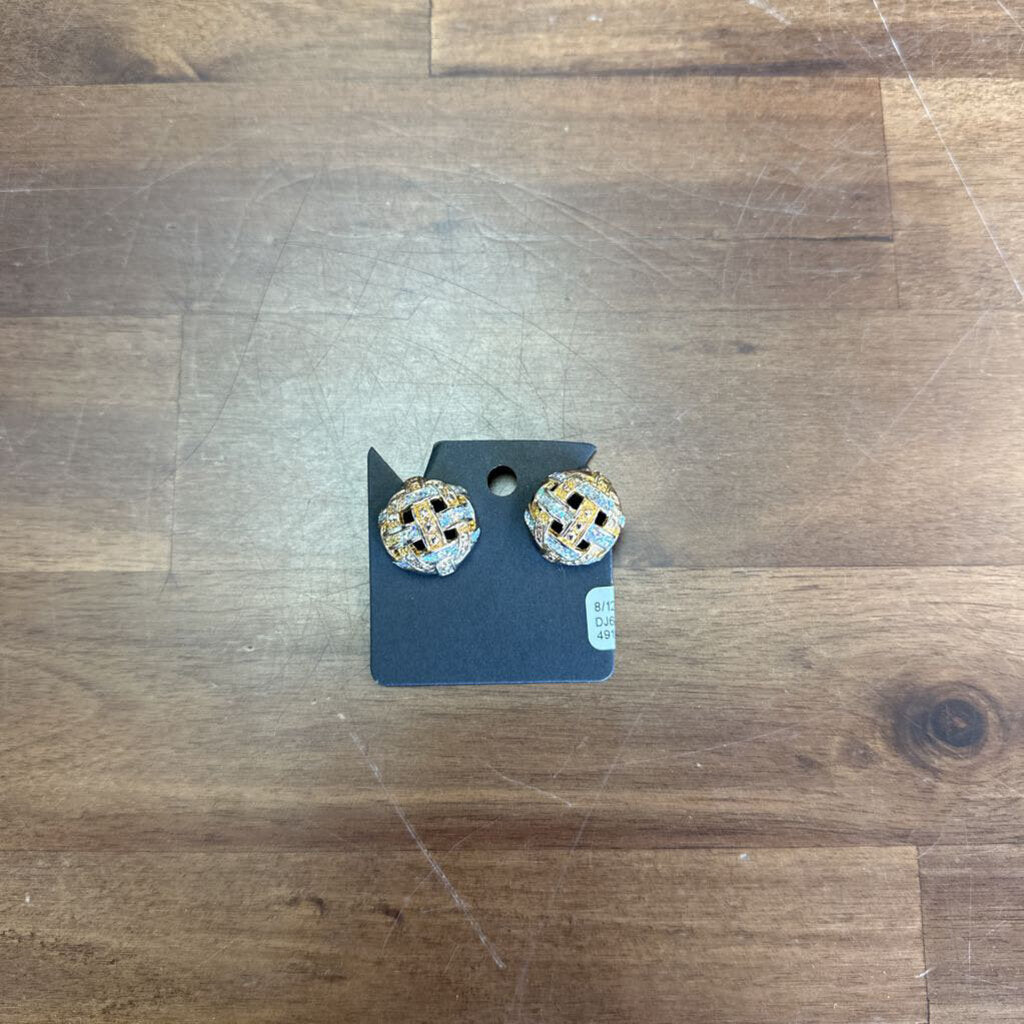 Vintage Clip On Earrings Basketweave
