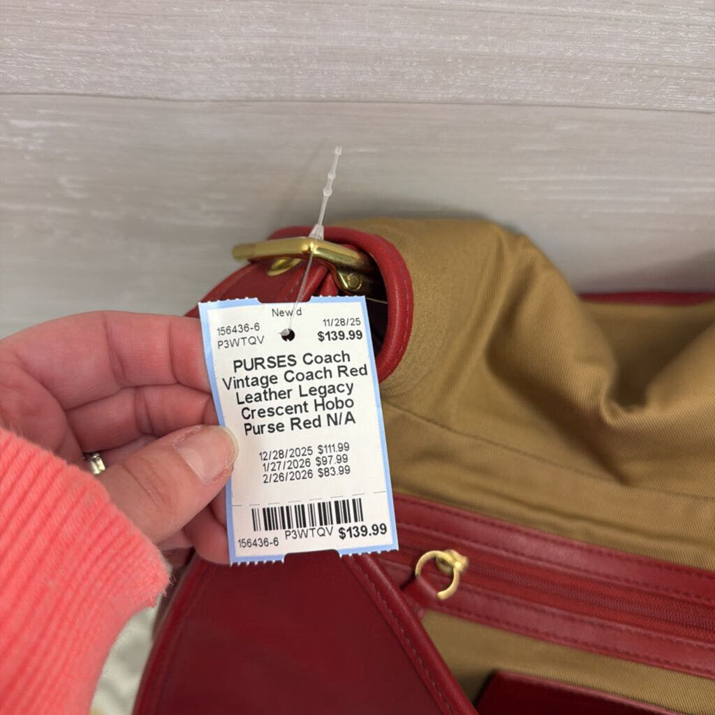 Vintage Coach Red Leather Legacy Crescent Hobo Purse