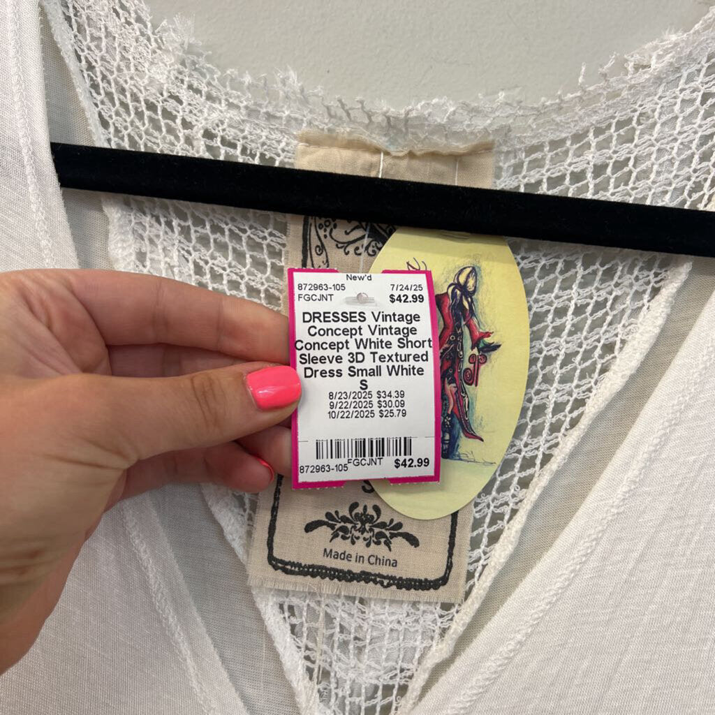 Vintage Concept White Short Sleeve 3D Textured Dress Small