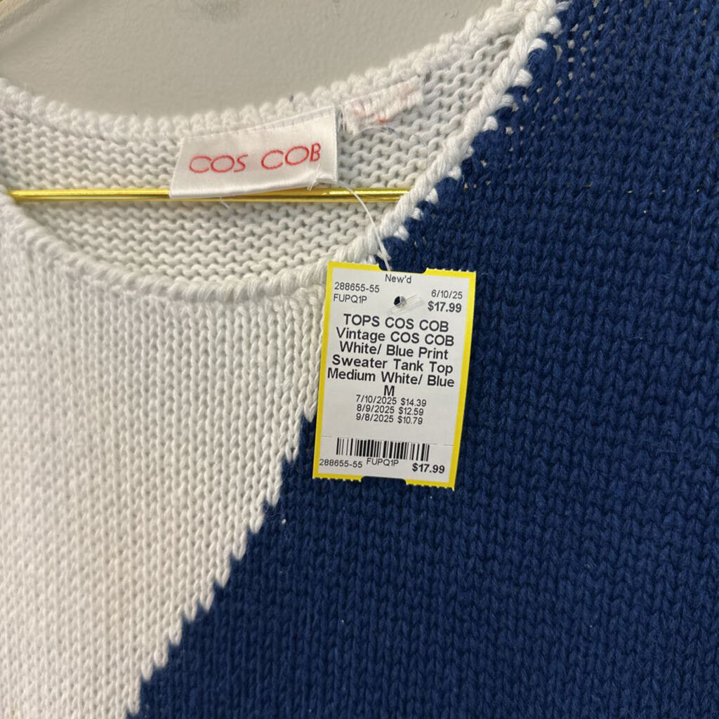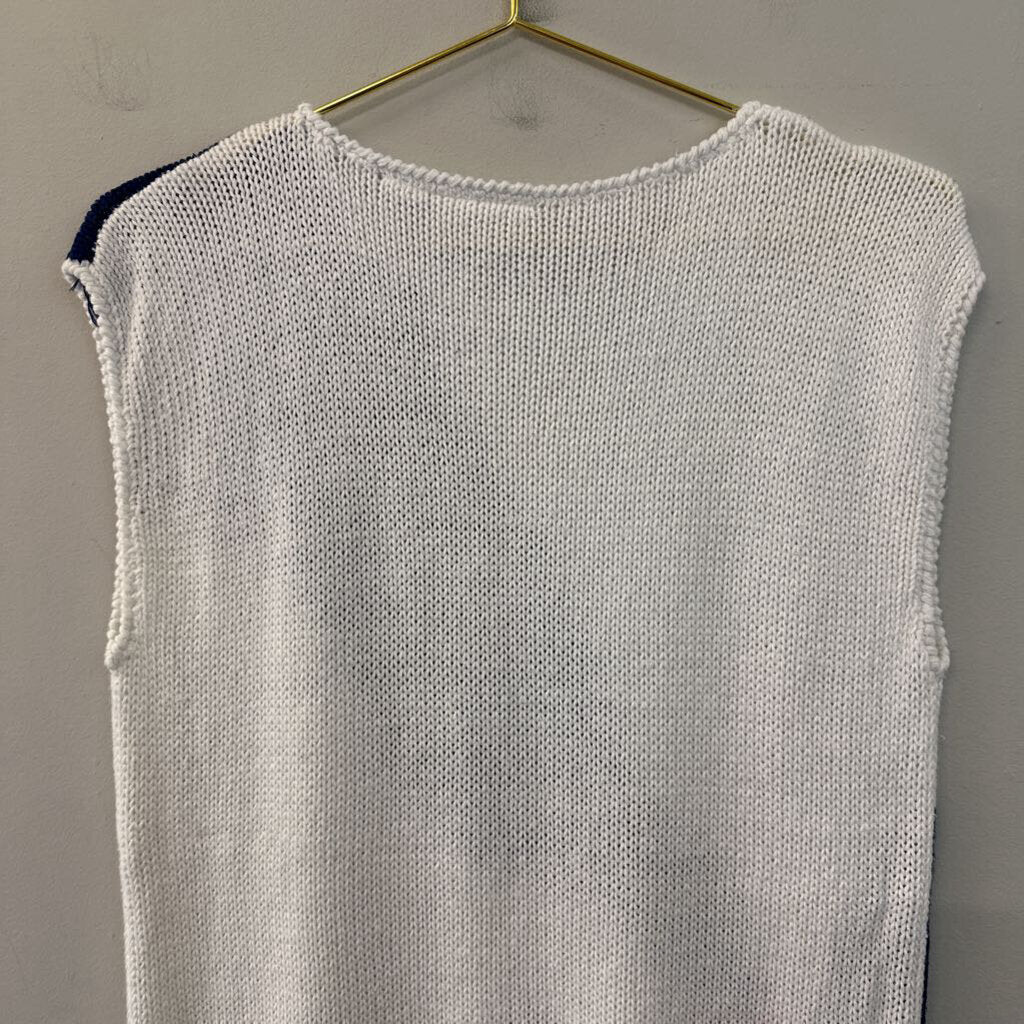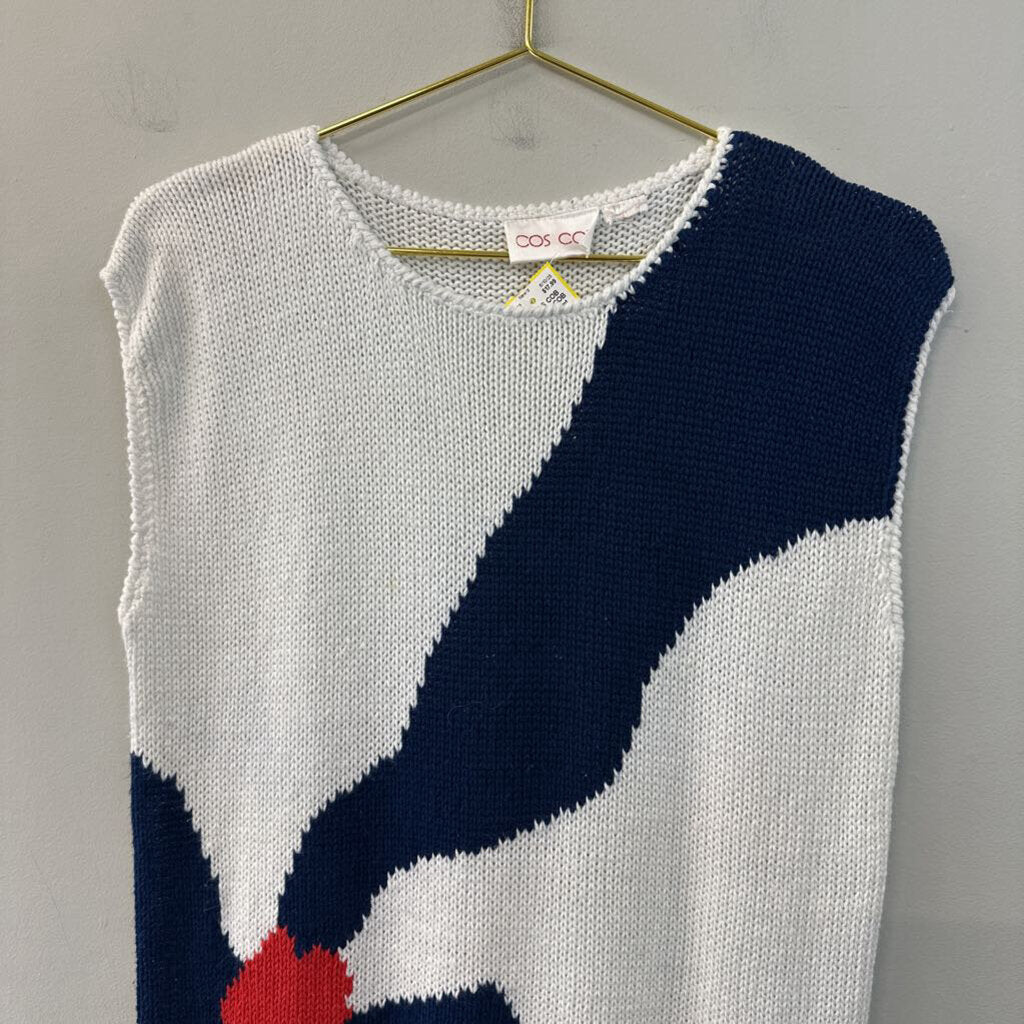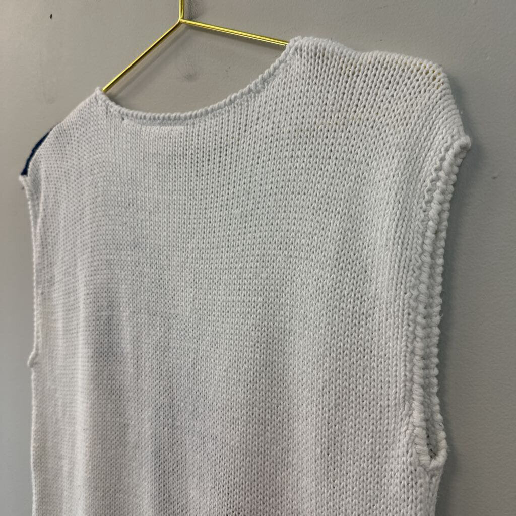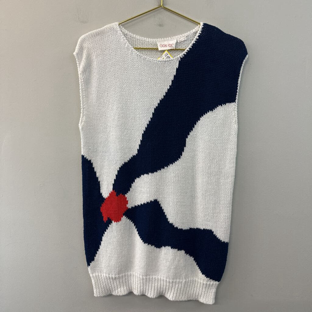 Vintage COS COB White/ Blue Print Sweater Tank Top Medium