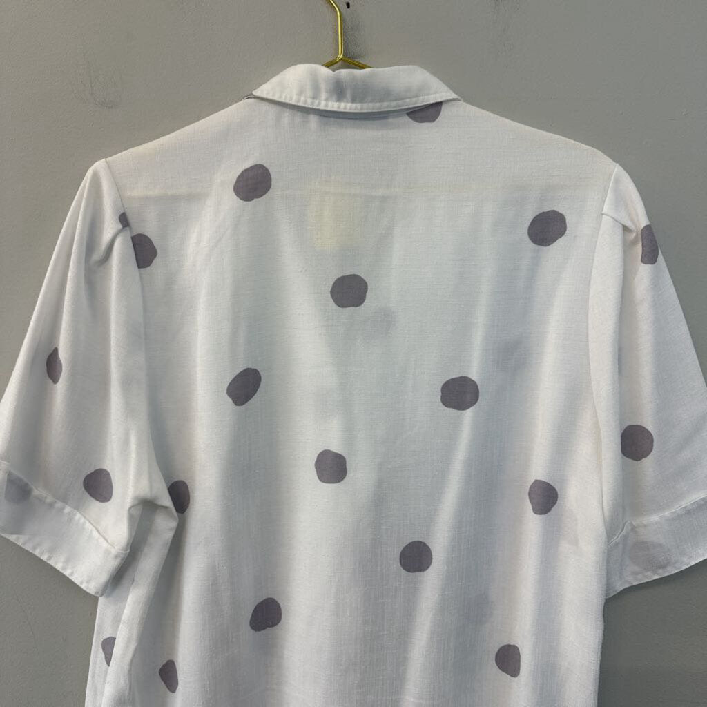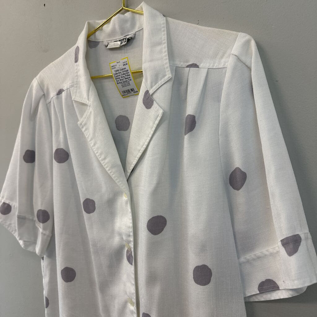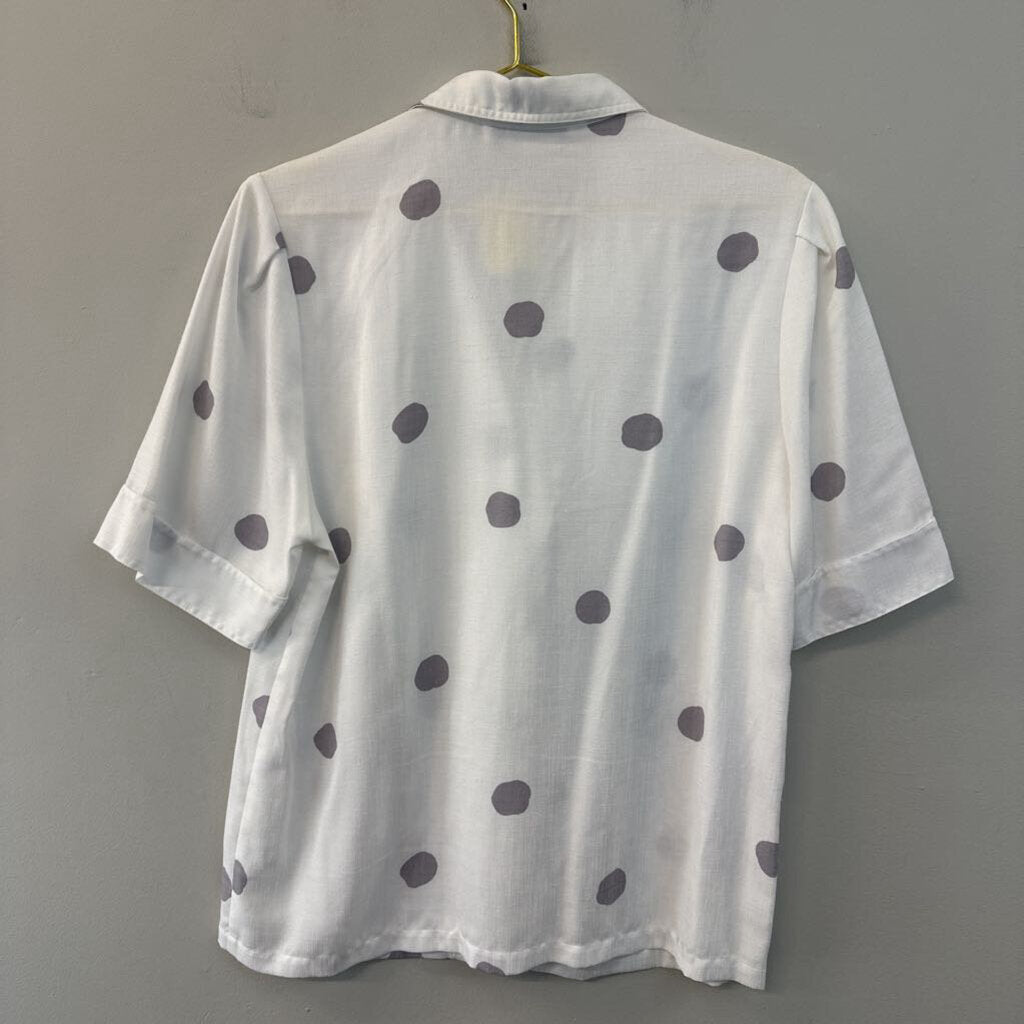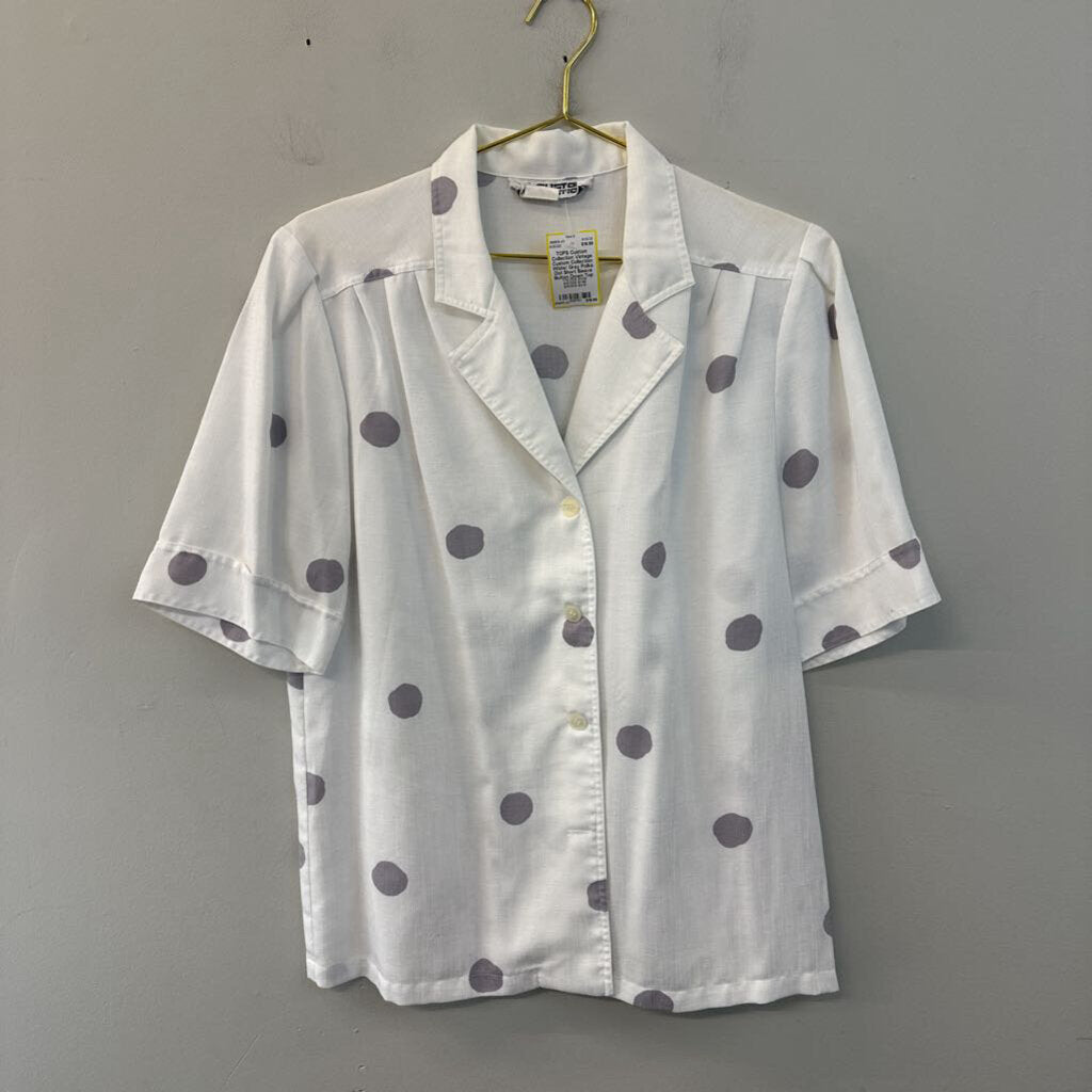 Vintage Custom Collection White/ Grey Polka Dot Short Sleeve Button Down Top Medium
