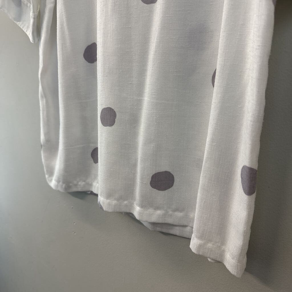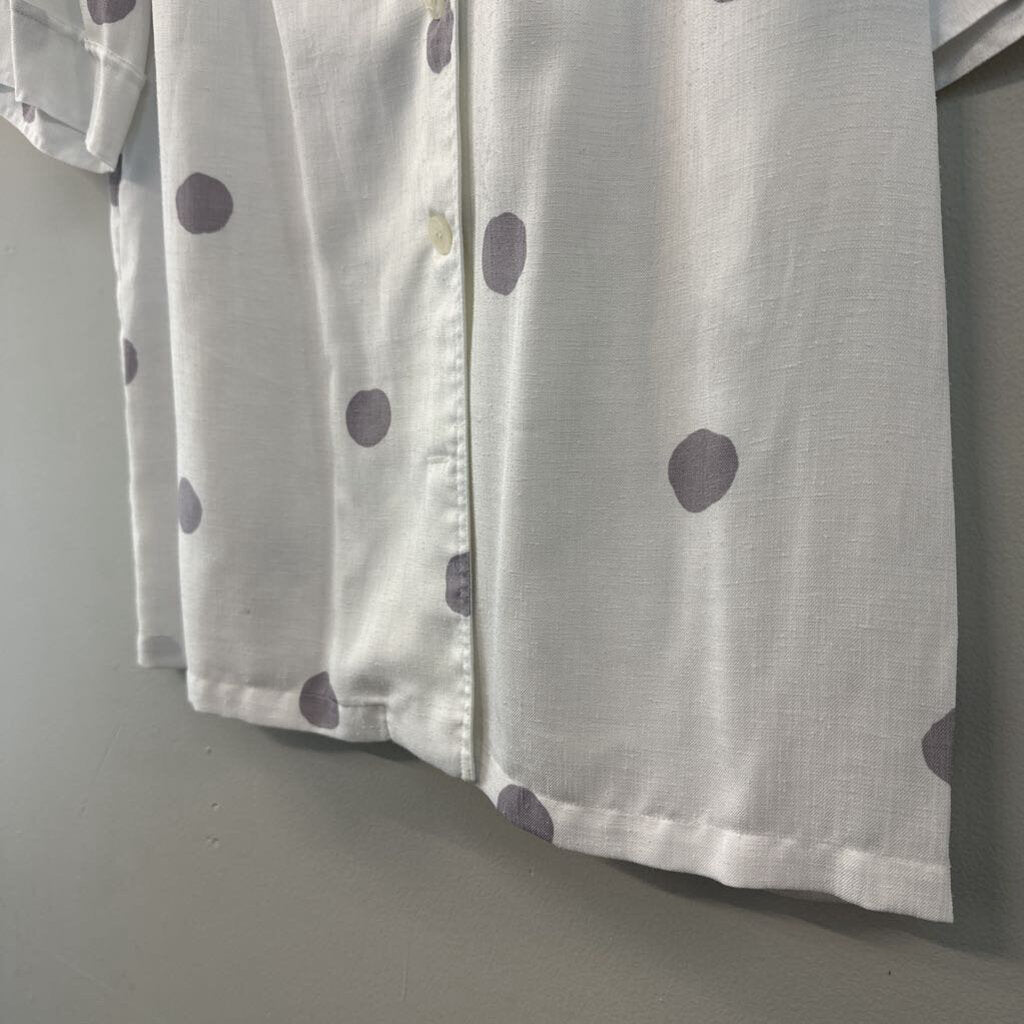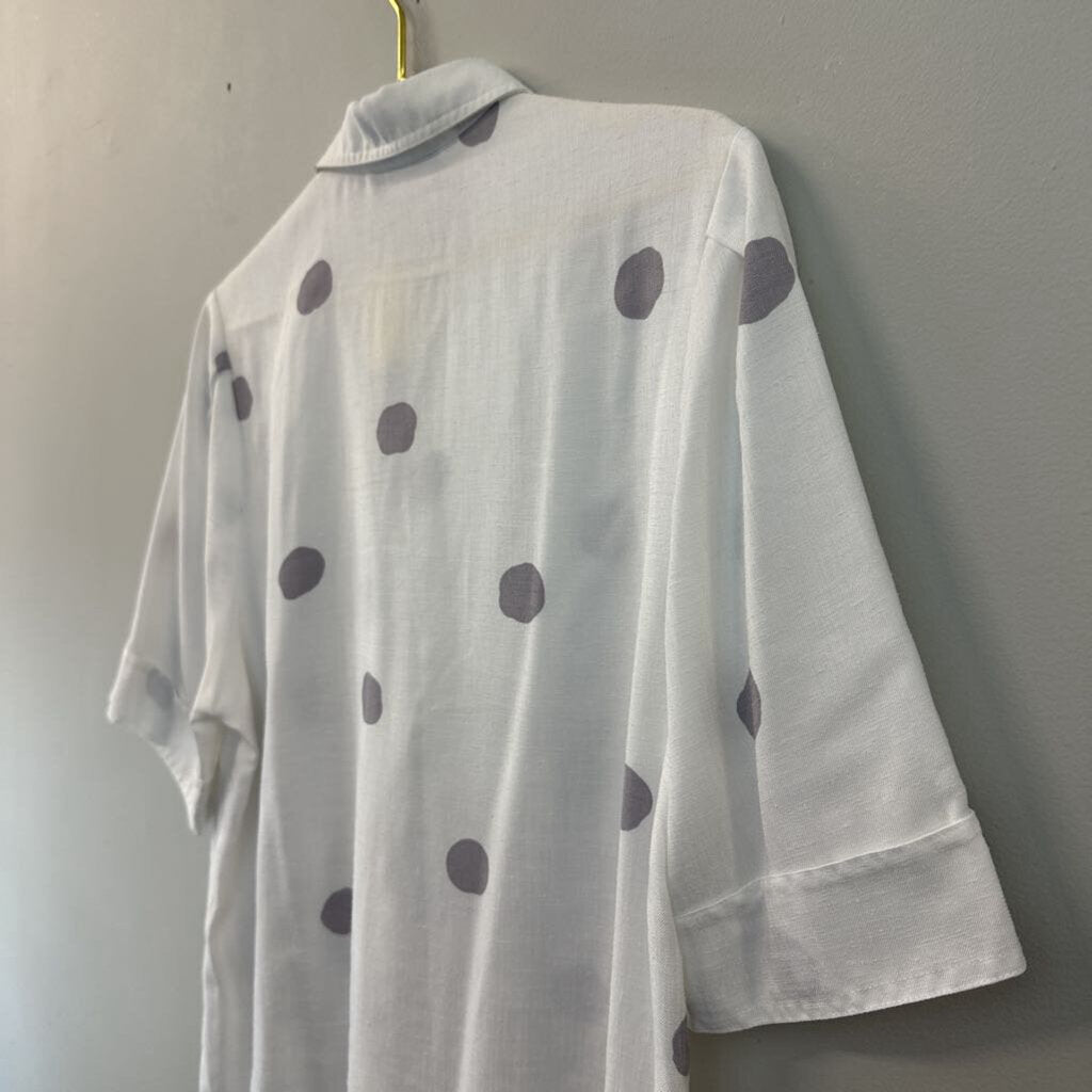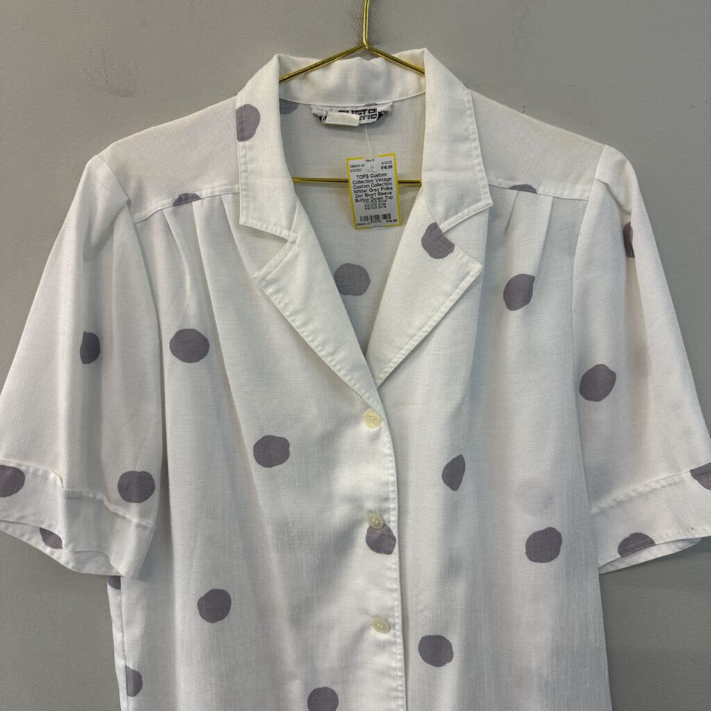 Vintage Custom Collection White/ Grey Polka Dot Short Sleeve Button Down Top Medium