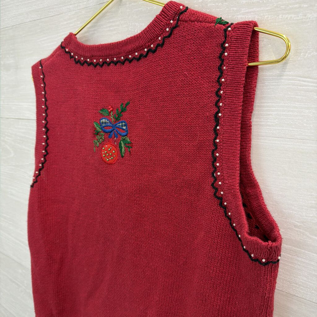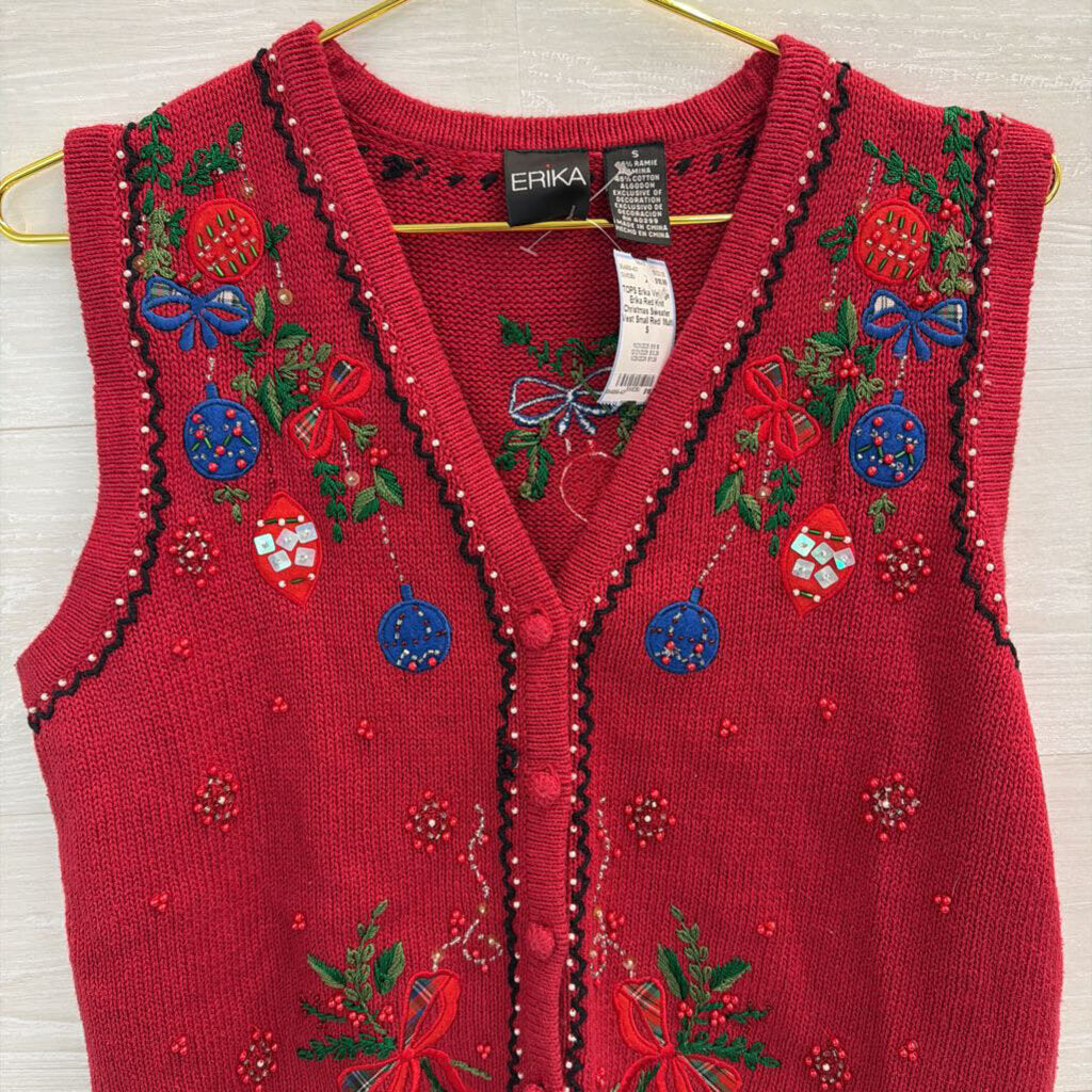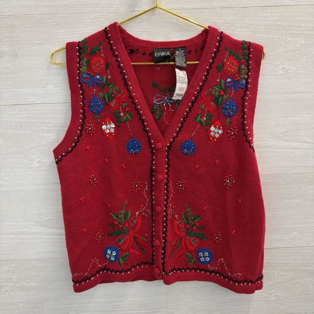 Vintage Erika Red Knit Christmas Sweater Vest Small