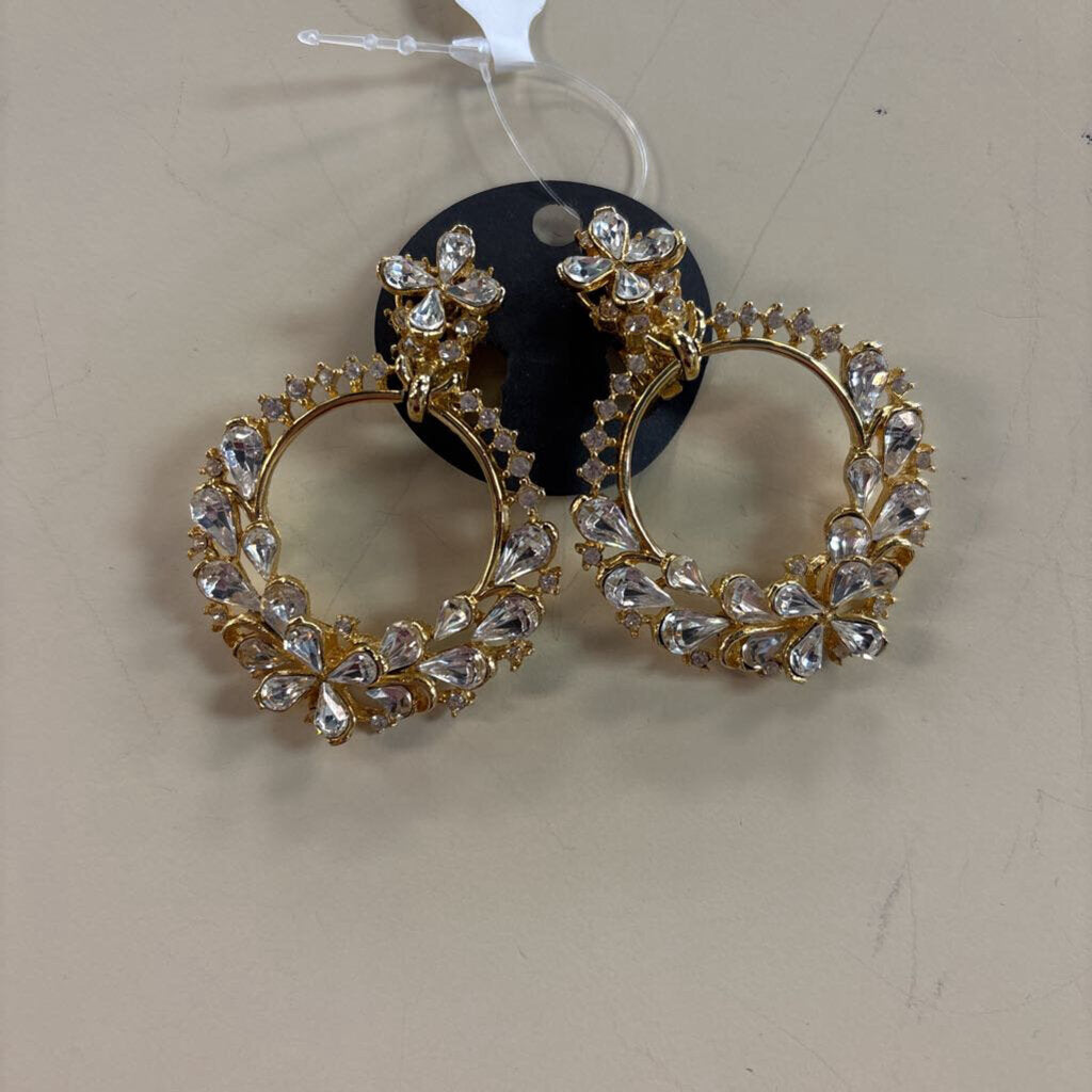 Vintage Gold/ Rhinestone Circle Drop Clip On Statement Earrings