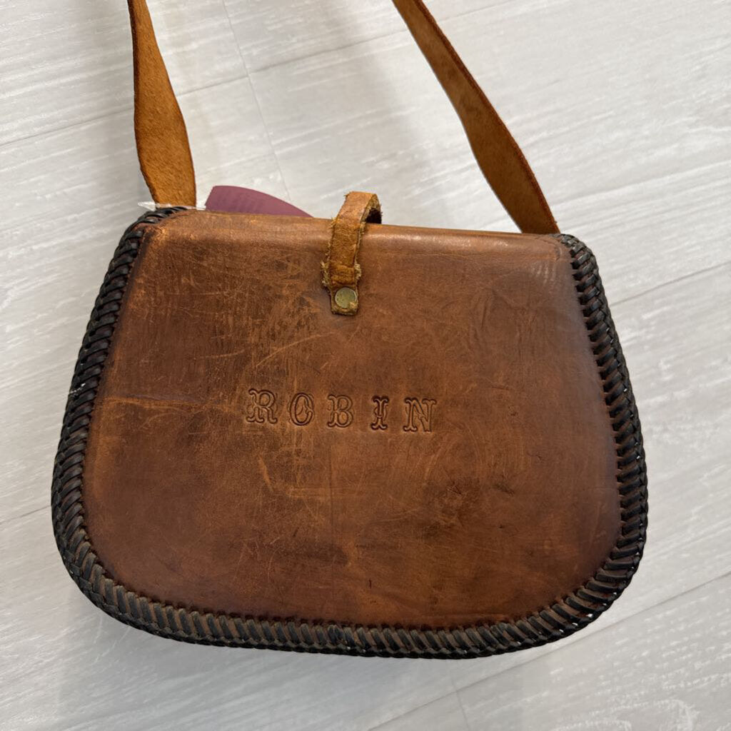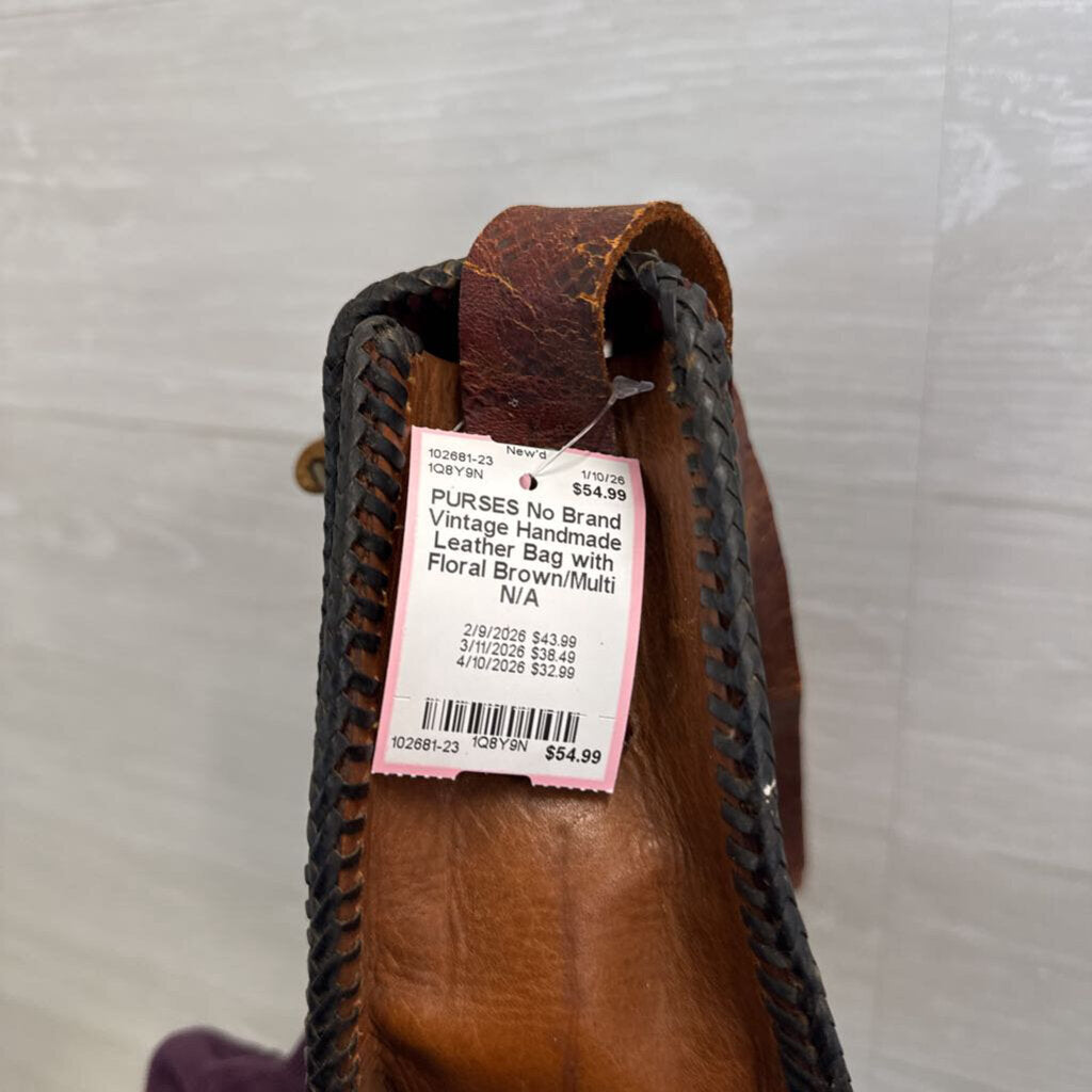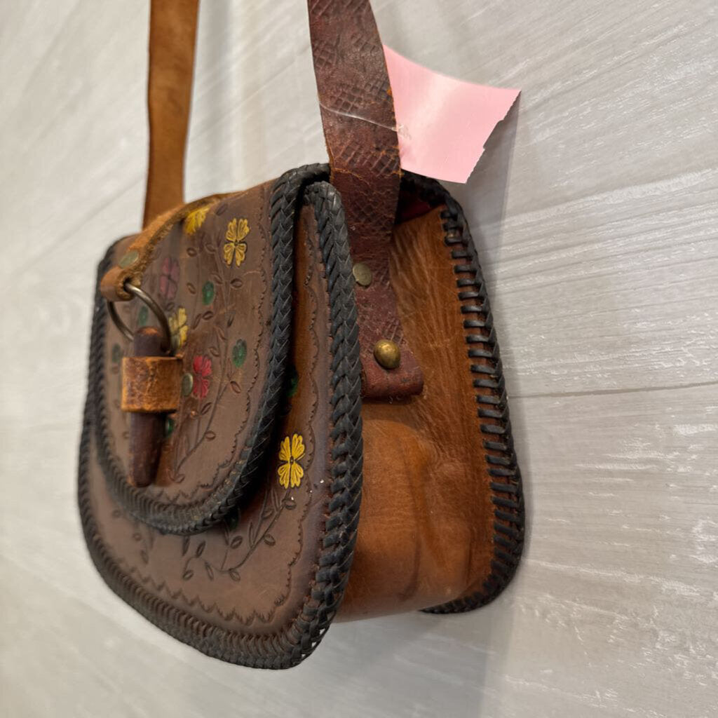 Vintage Handmade Leather Bag with Floral