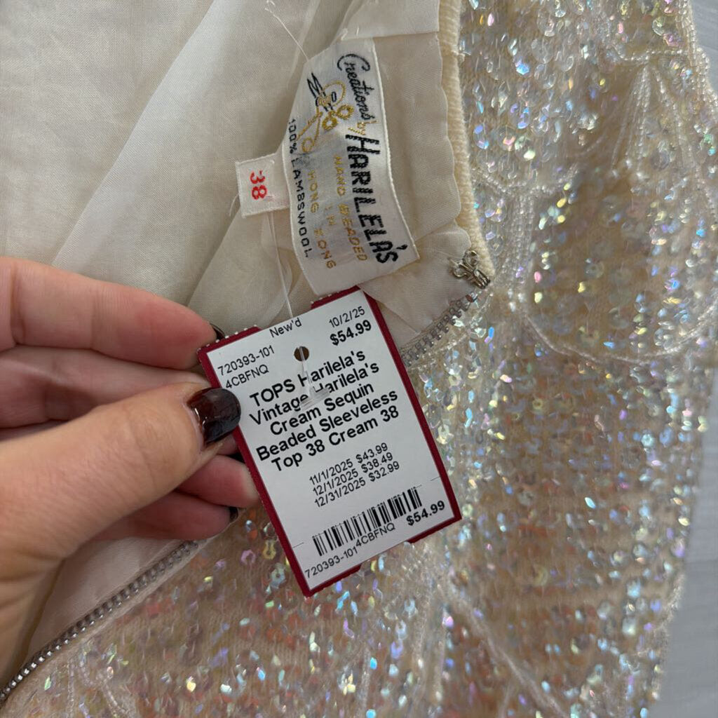 Vintage Harilela's Cream Sequin Beaded Sleeveless Top 38