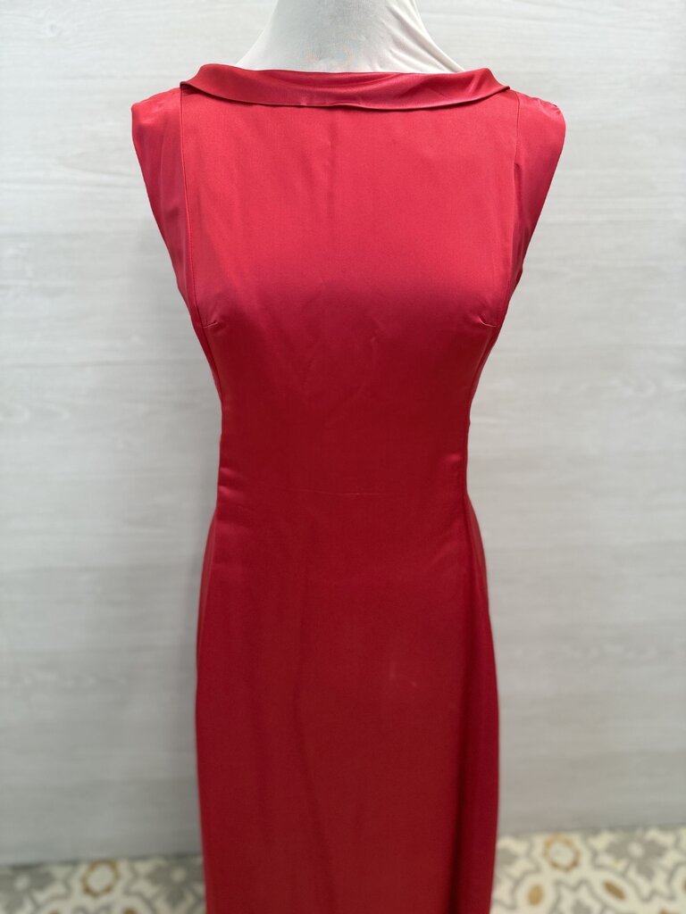 Vintage Hot Pink Silky High Neck Long Formal Dress Medium