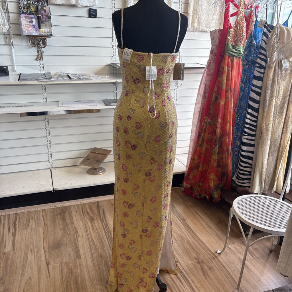 Vintage Je Matadi Yellow/ Multi Floral Beaded Long Formal Dress Small