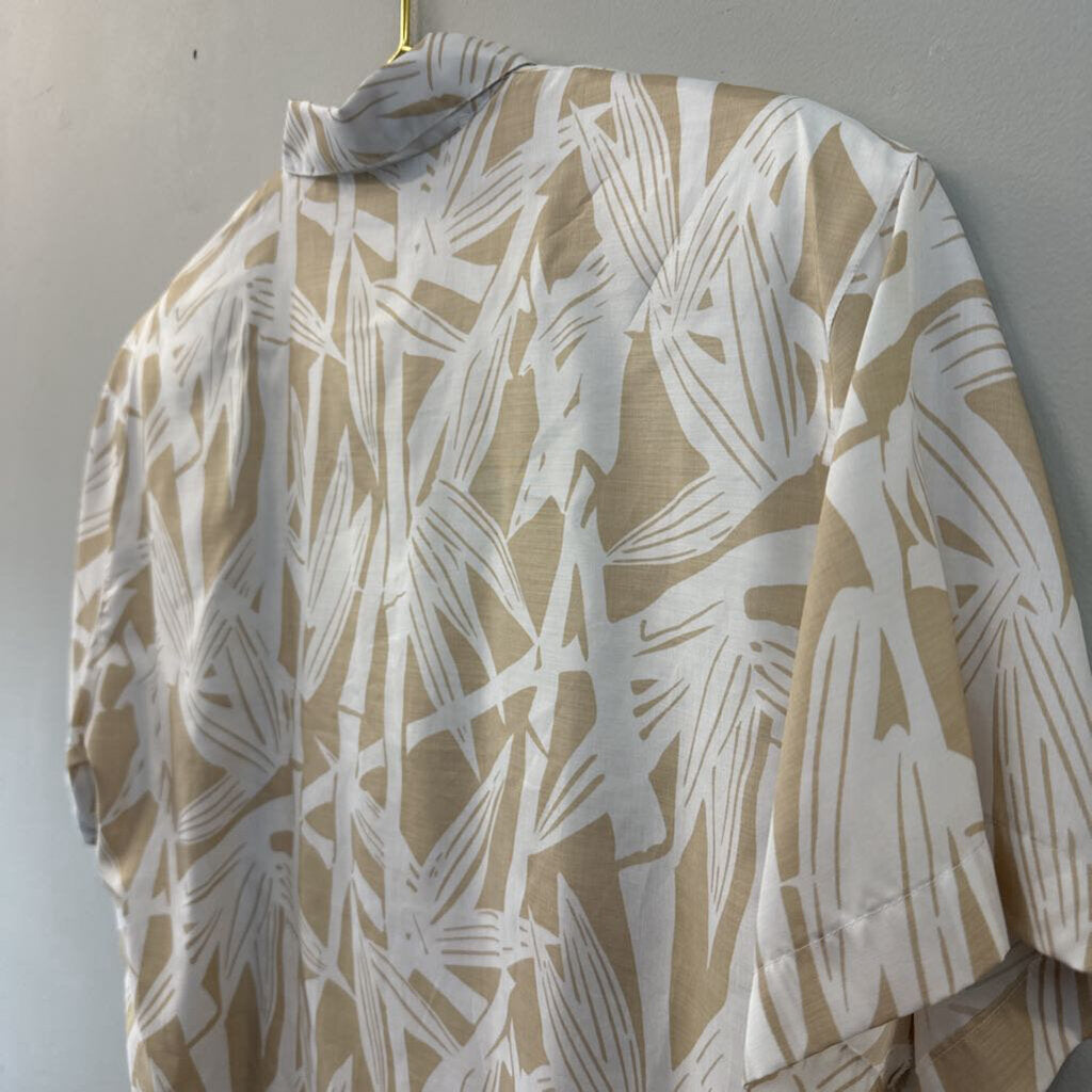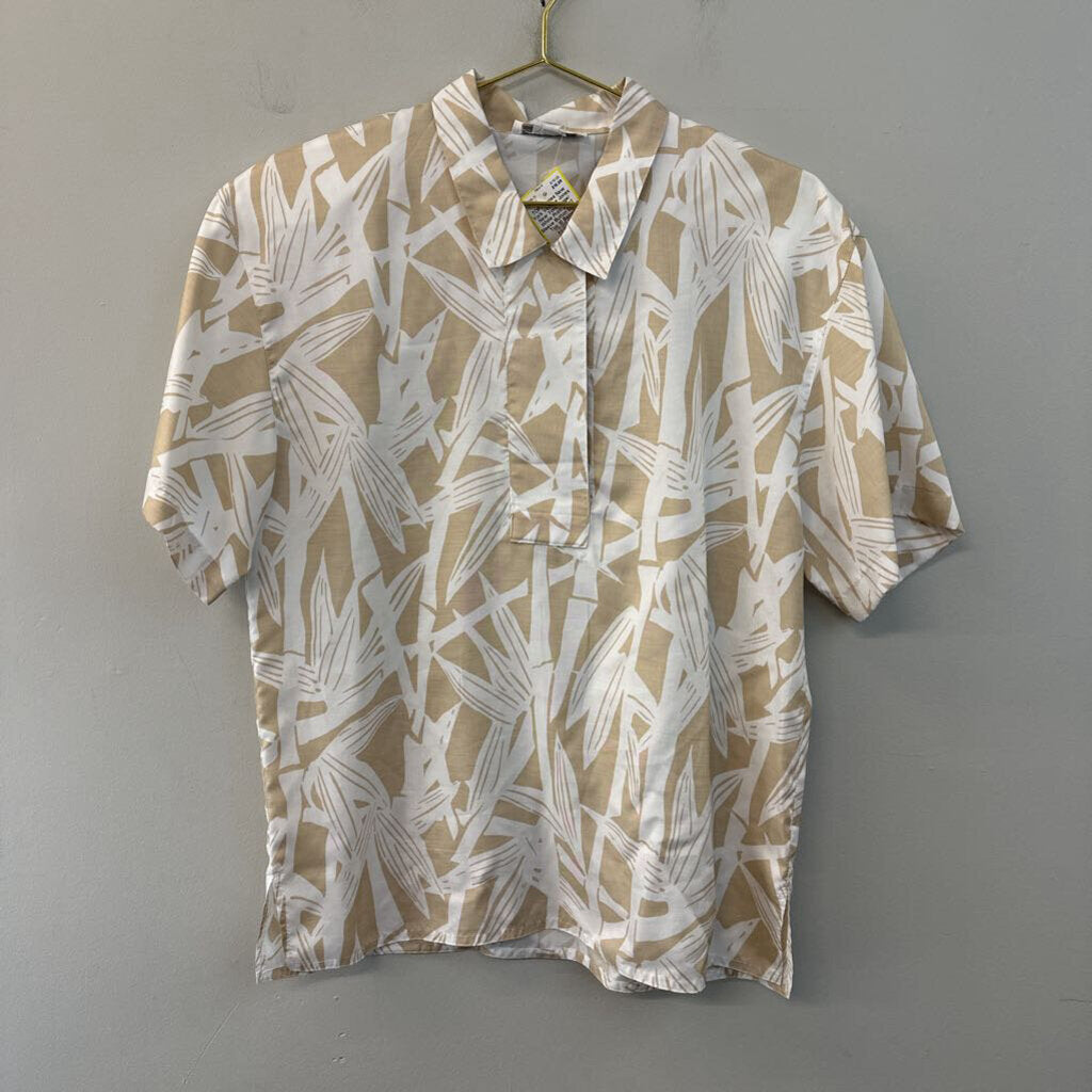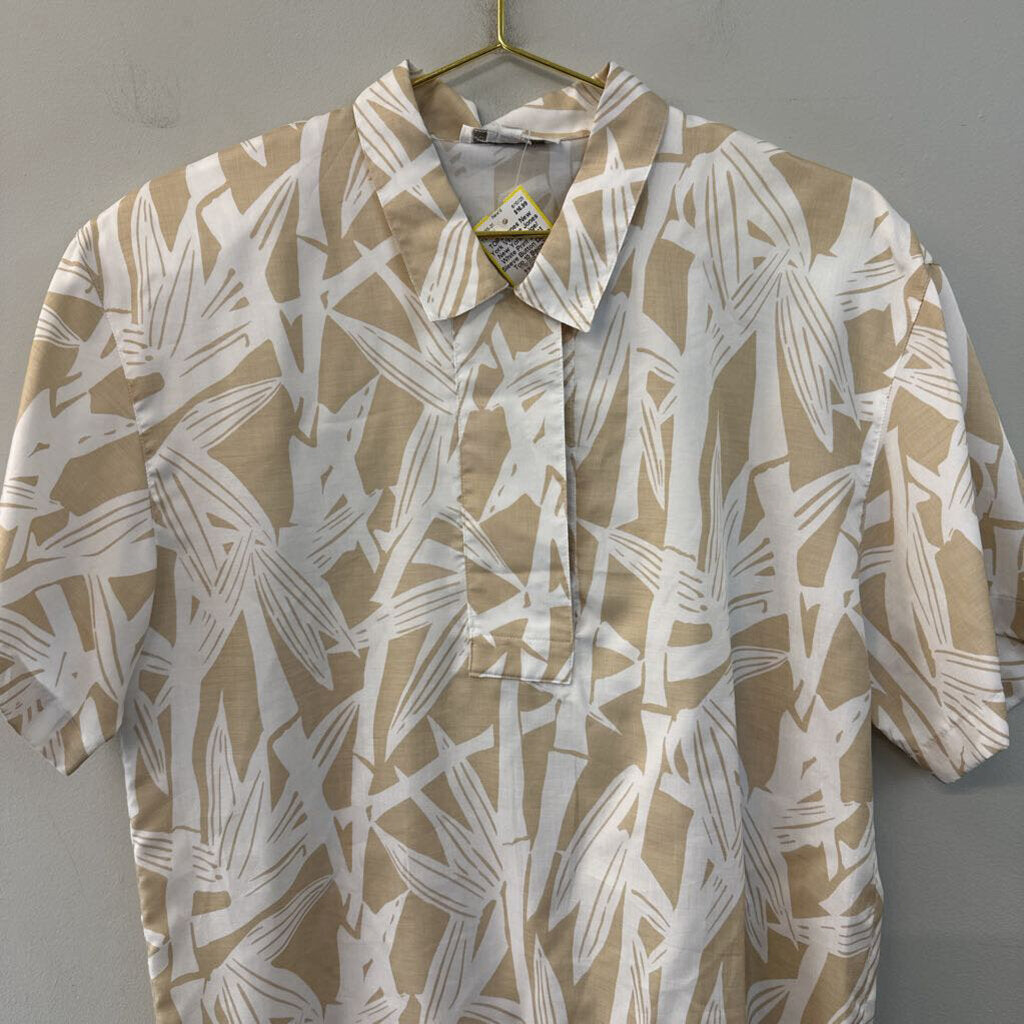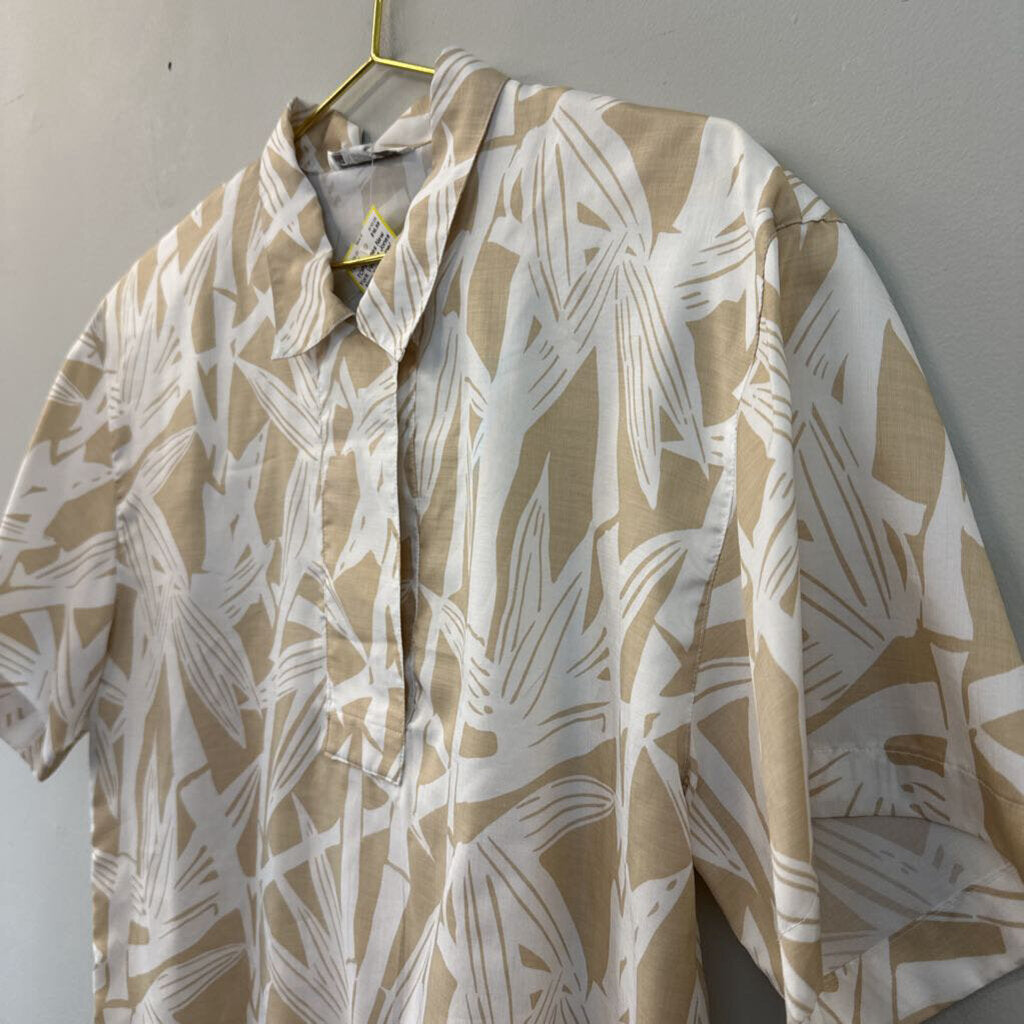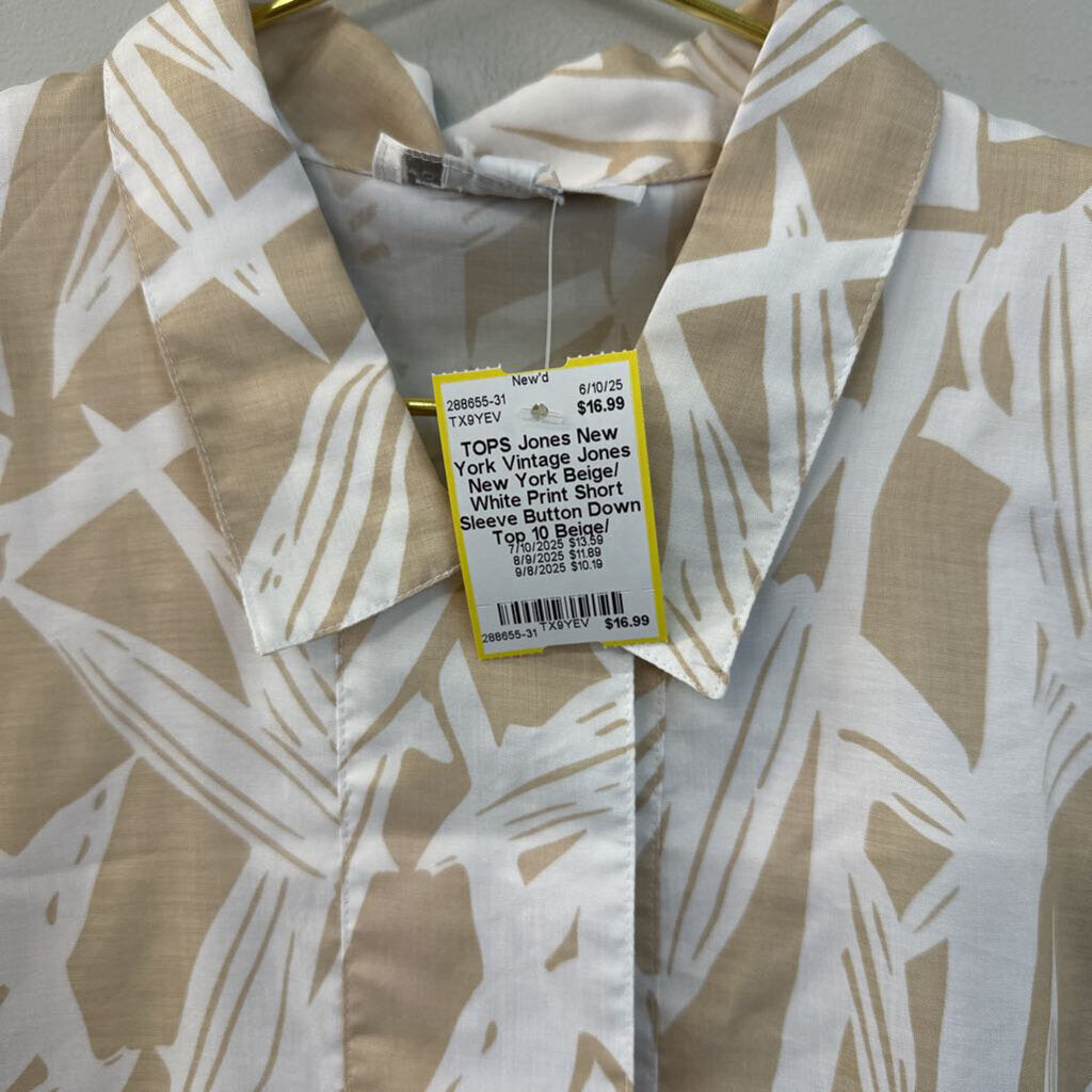 Vintage Jones New York Beige/ White Print Short Sleeve Button Down Top 10