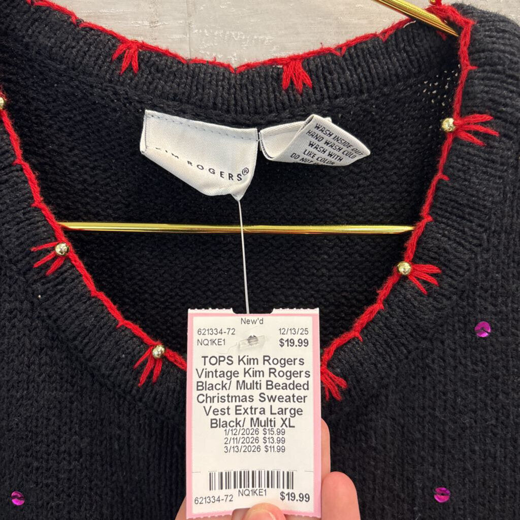 Vintage Kim Rogers Black/ Multi Beaded Christmas Sweater Vest Extra Large