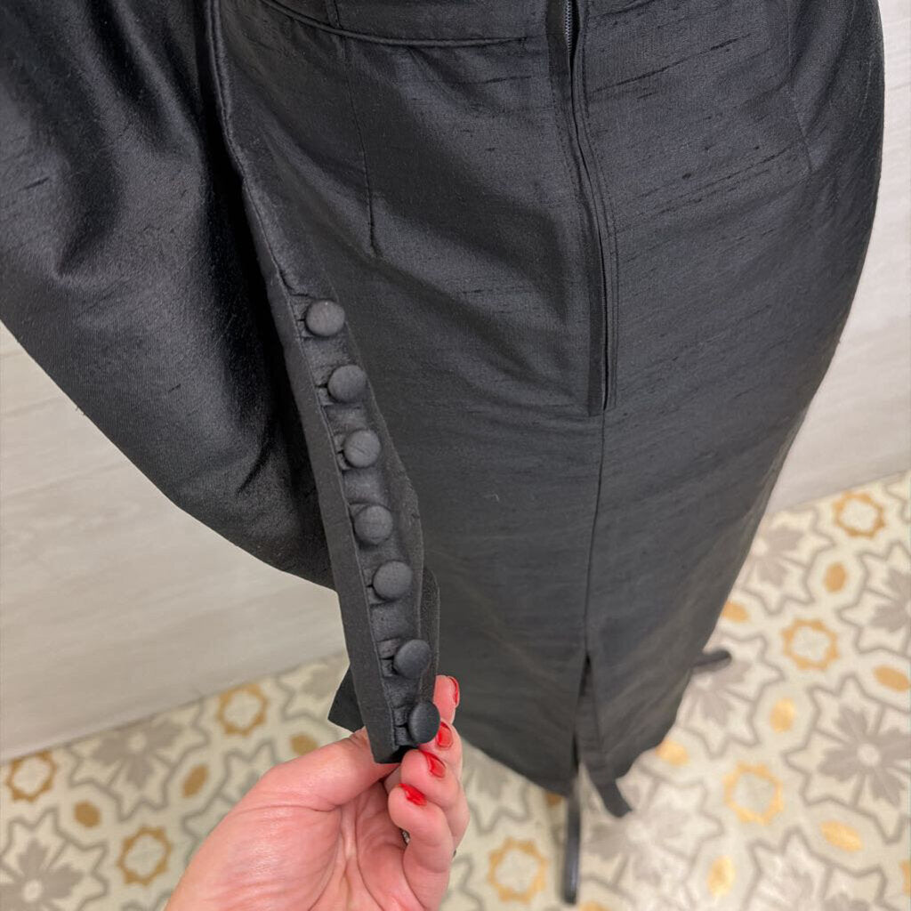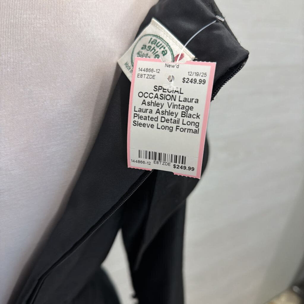 Vintage Laura Ashley Black Pleated Detail Long Sleeve Long Formal Dress Medium