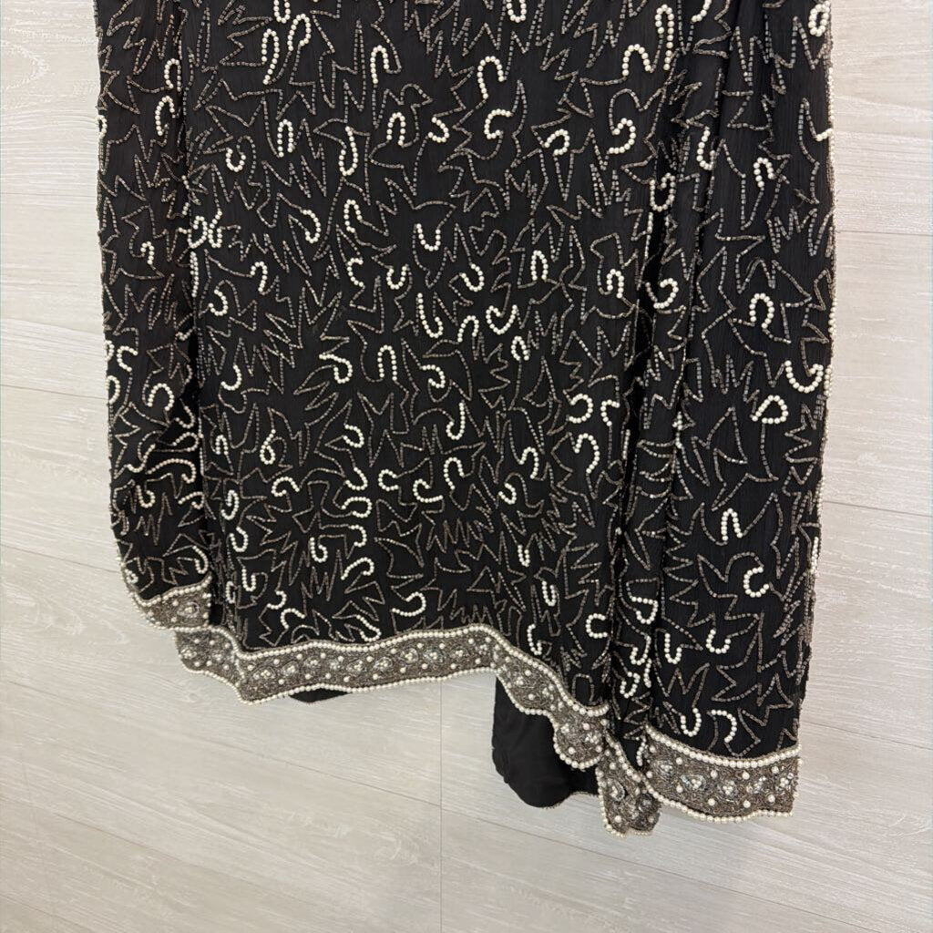 Vintage Laurence Kazar Black/ Silver Beaded Open Front Jacket Top Extra Large