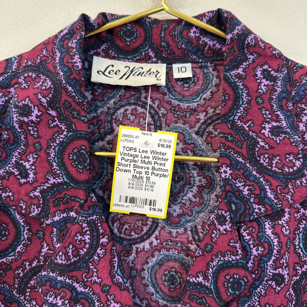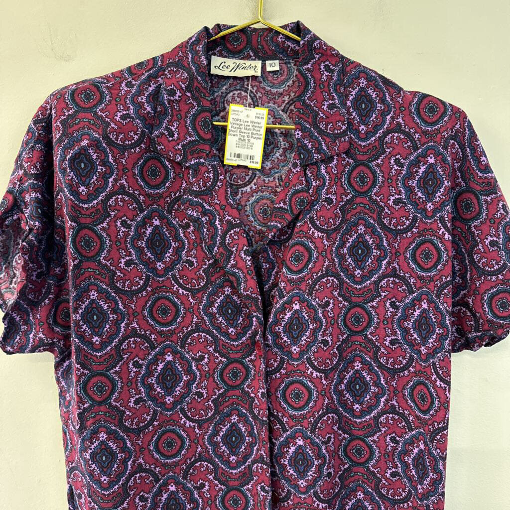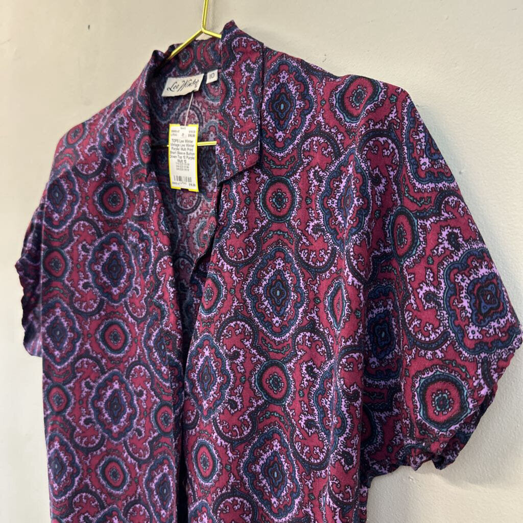 Vintage Lee Winter Purple/ Multi Print Short Sleeve Button Down Top 10