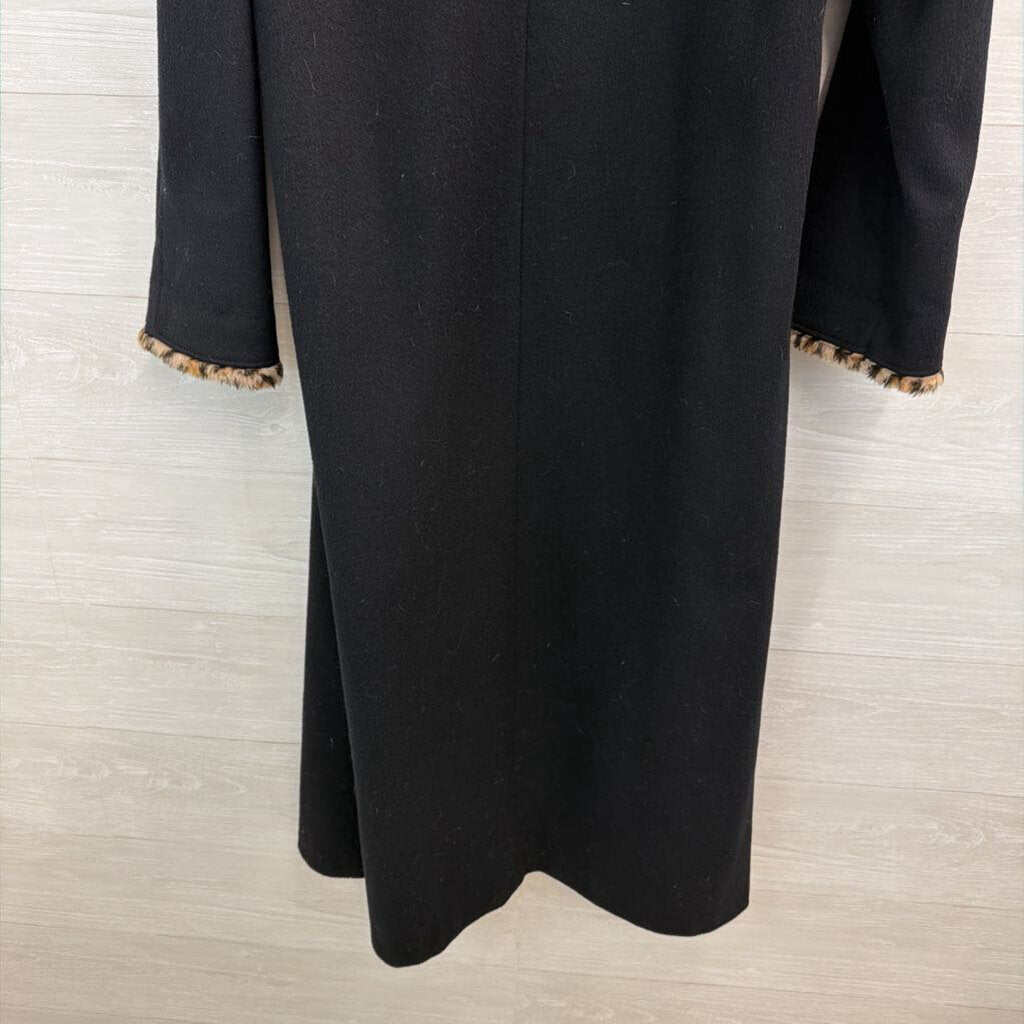 Vintage Mario De Pinto Black Leopard Faux Fur Trim Long Jacket Large