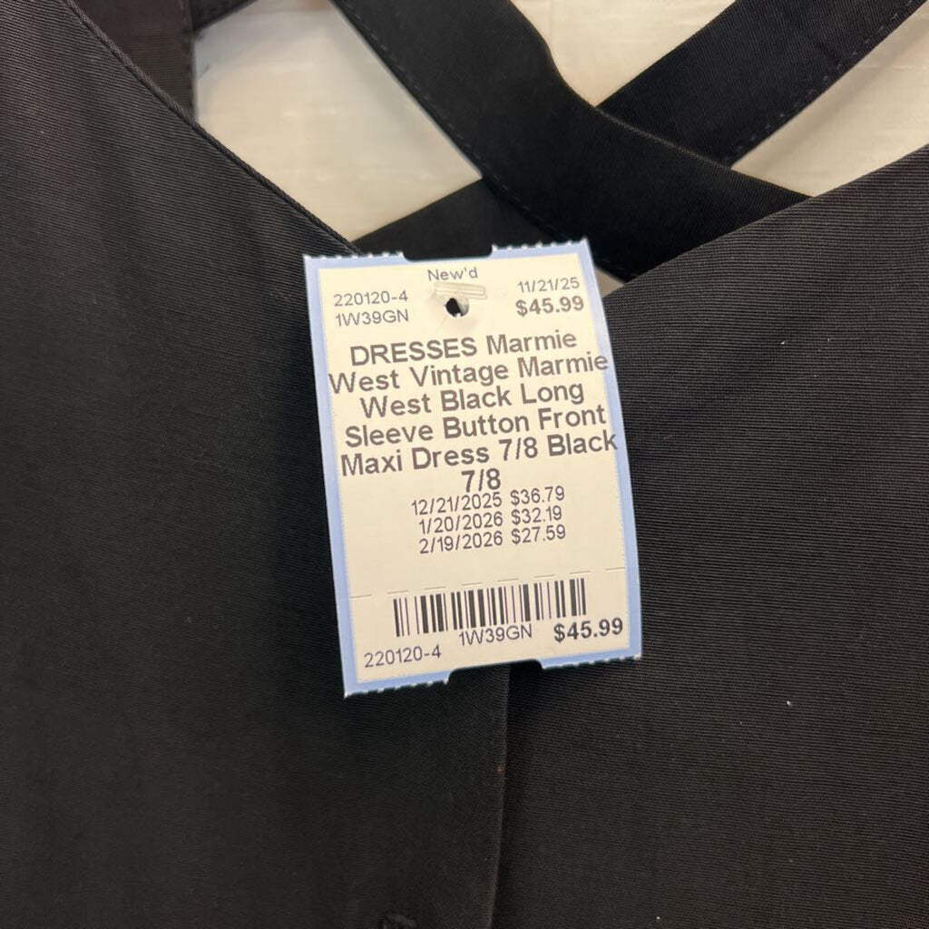 Vintage Marmie West Black Long Sleeve Button Front Maxi Dress 7/8