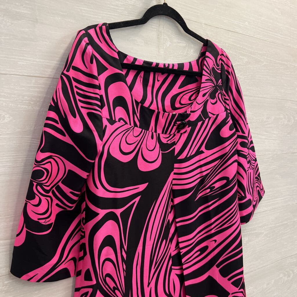 Vintage Milly of New York Pink/ Black Print Retro Long Sleeve Dress 10