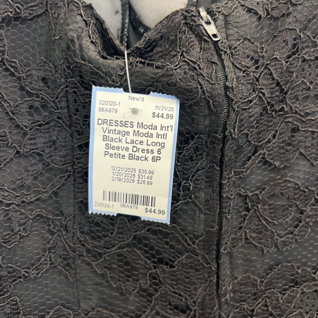 Vintage Moda Intl Black Lace Long Sleeve Dress 6 Petite