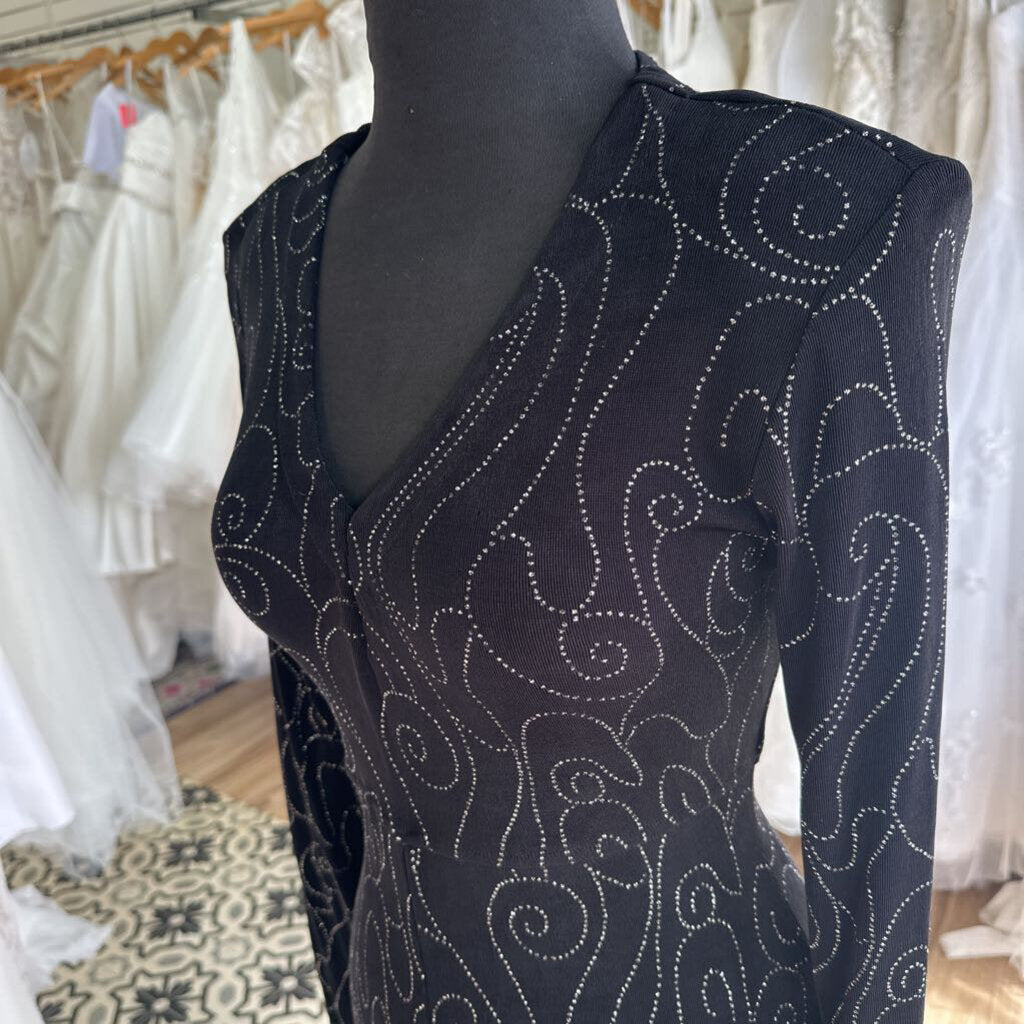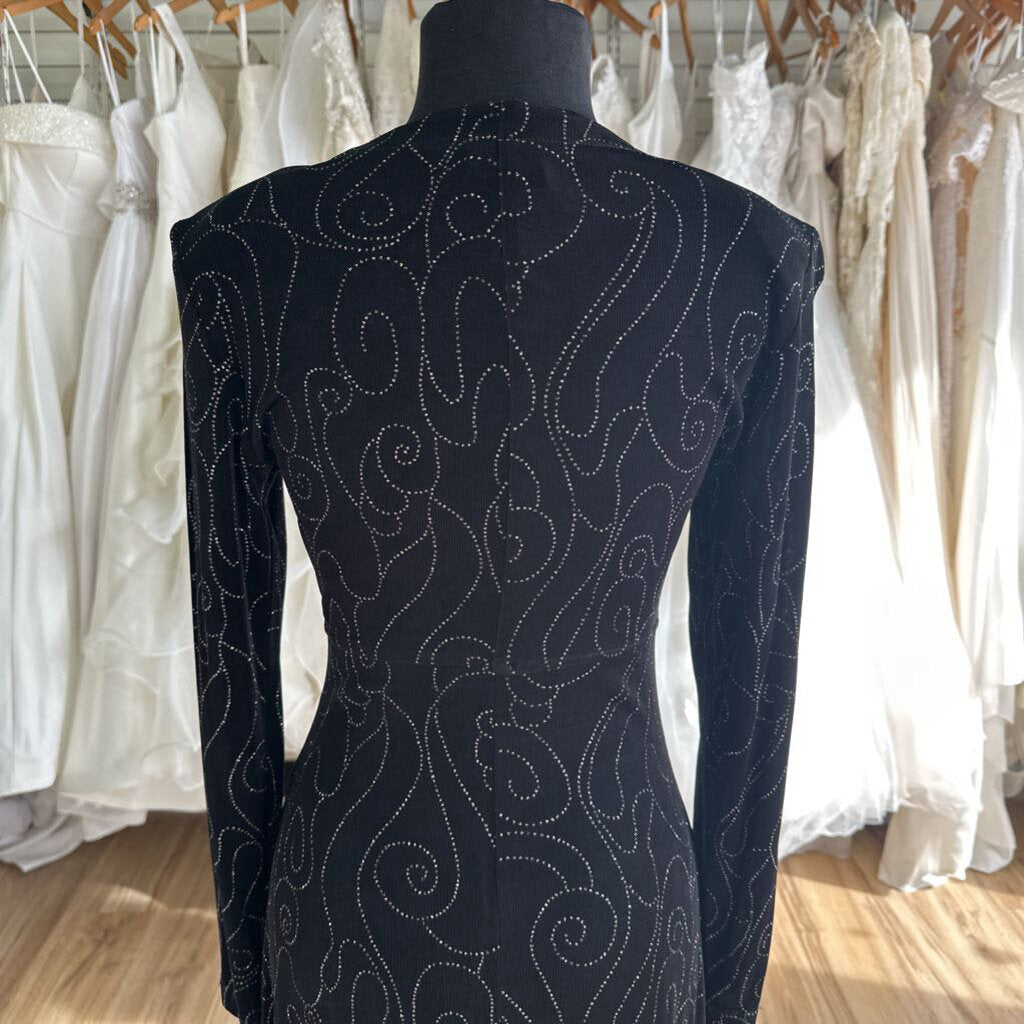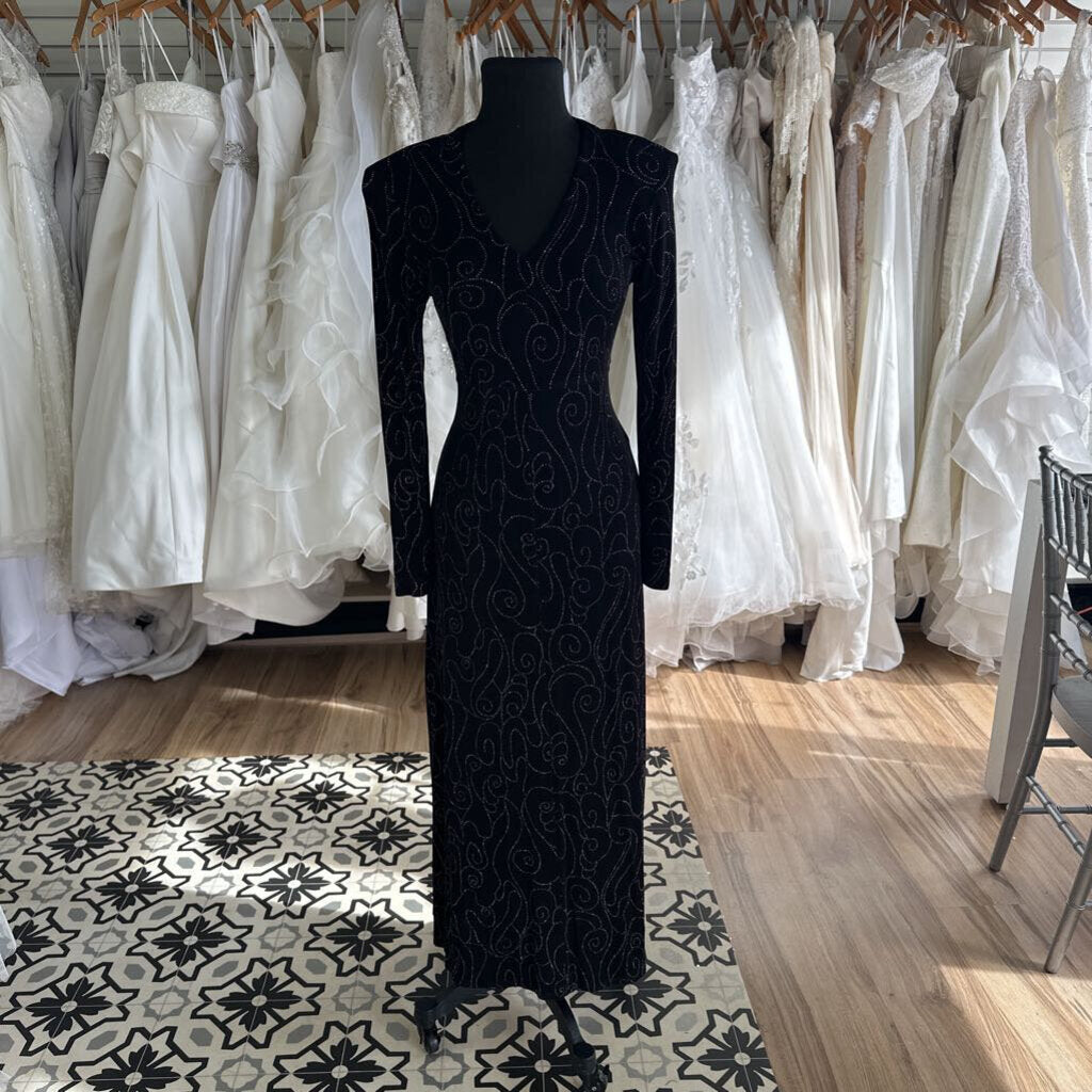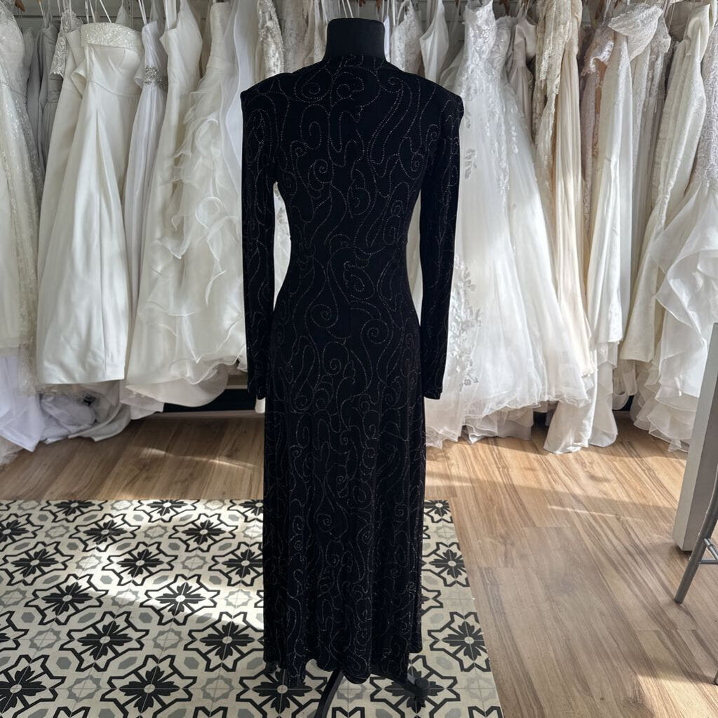 Vintage Rabbit Designs Black/ Silver Sparkle Long Sleeve Long Formal Dress Small